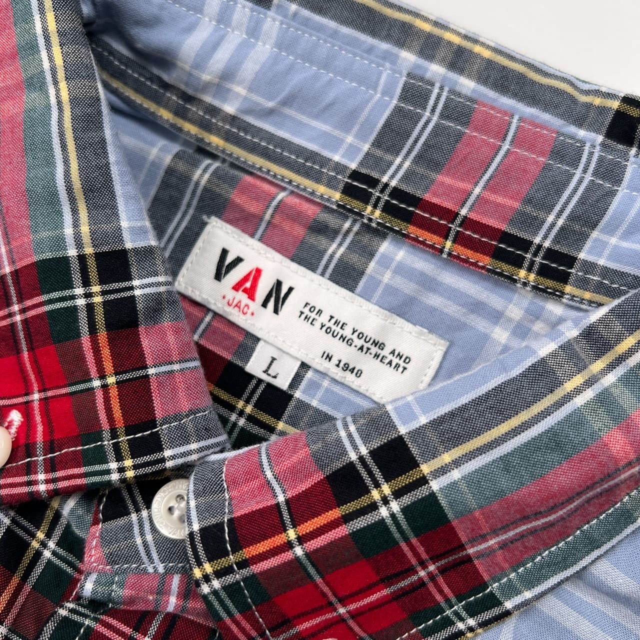 VAN JAC ヴァンヂャケット チェック柄 BD ボタンダウン 半袖シャツ サイズ L /レッド系×水色系