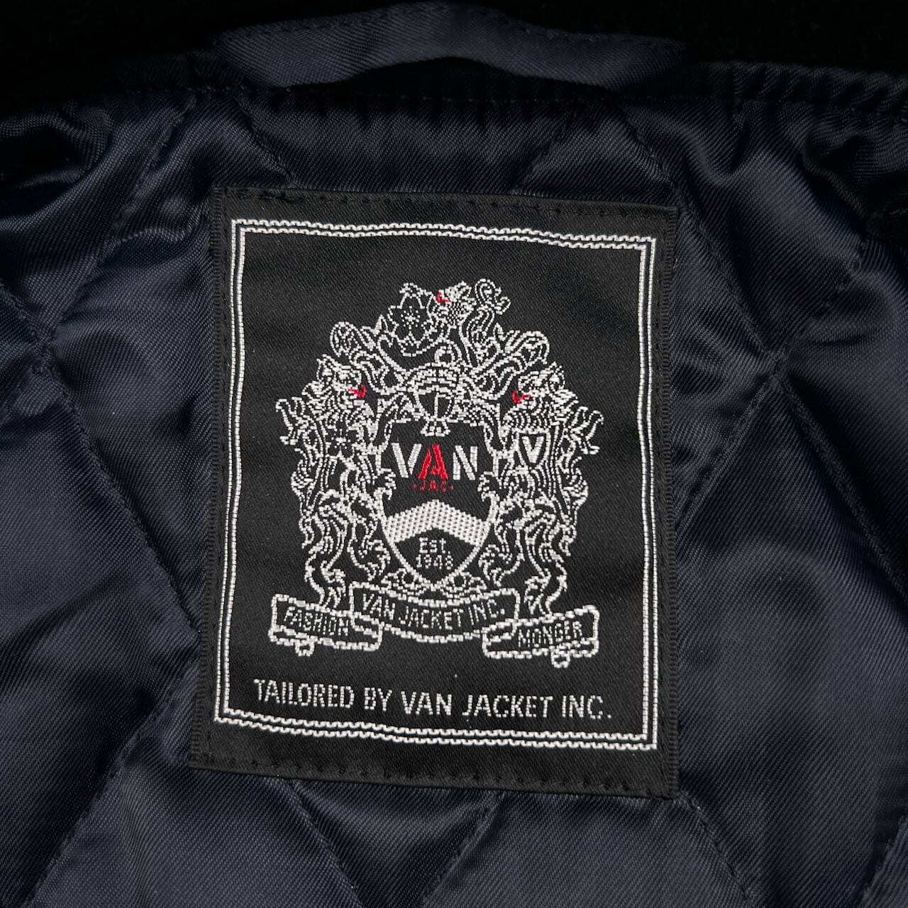 美品 VAN JAC ヴァンヂャケット 袖革 牛革 本革 レザー スタジャン サイズ M /アーチロゴ/レタードワッペン/ネイビー