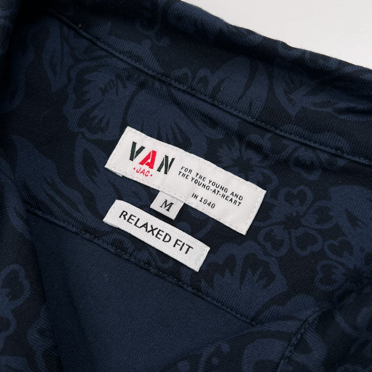 美品 VAN JAC ヴァンヂャケット ハイビスカス 総柄 半袖 コットン アロハシャツ サイズ M /ネイビー/花柄/天竺