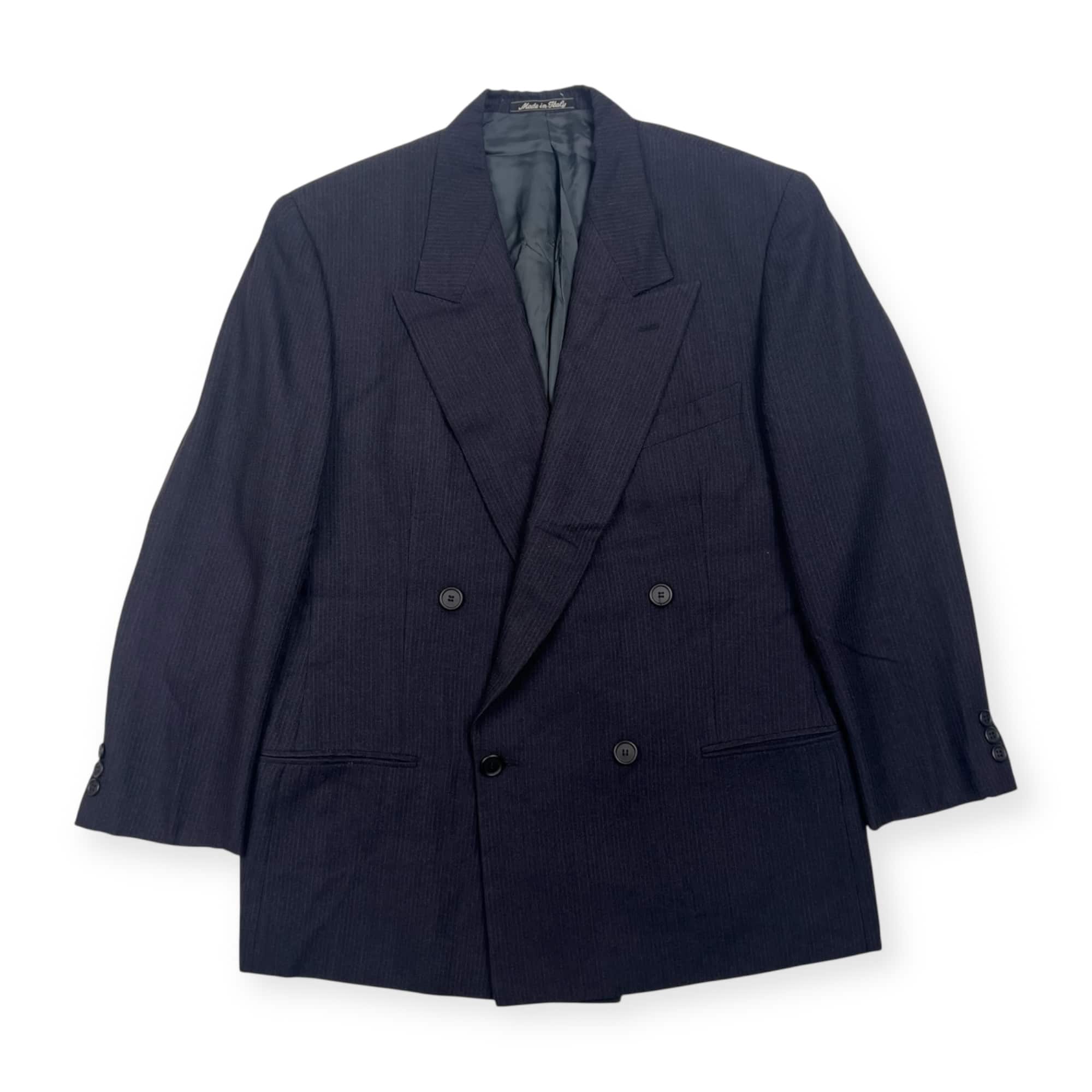 イタリア製 GIORGIO ARMANI ジョルジオアルマーニ ストライプ ダブル テーラードジャケット 42/ブラック系 メンズ
