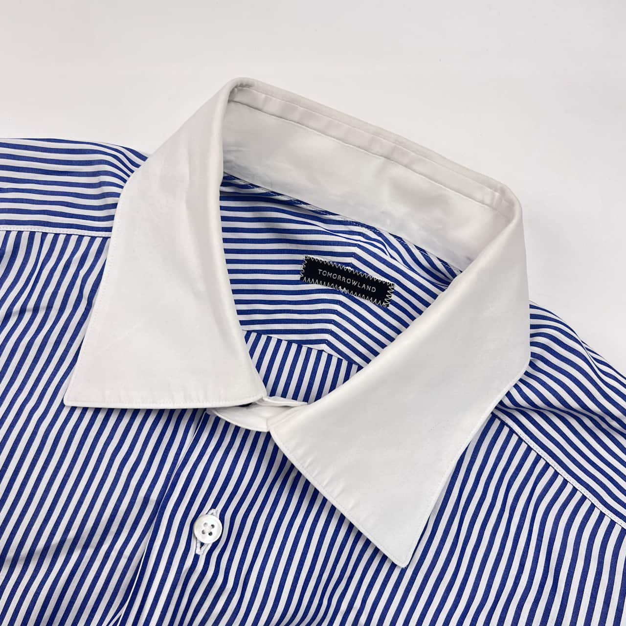 TOMORROWLAND トゥモローランド ストライプ 長袖 クレリック カフスシャツ 39 15 1/3 /ブルー系 メンズ