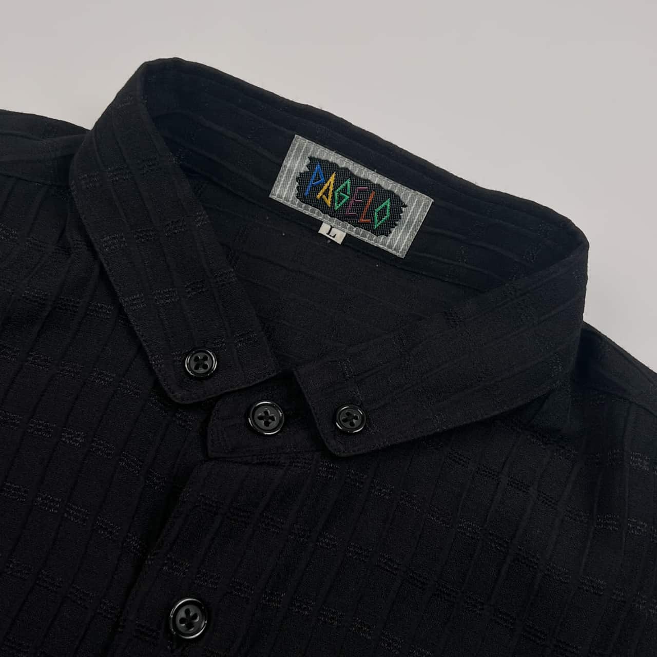 PAGELO パジェロ チェック風 デザイン BD ボタンダウン 長袖シャツ L/ブラック メンズ