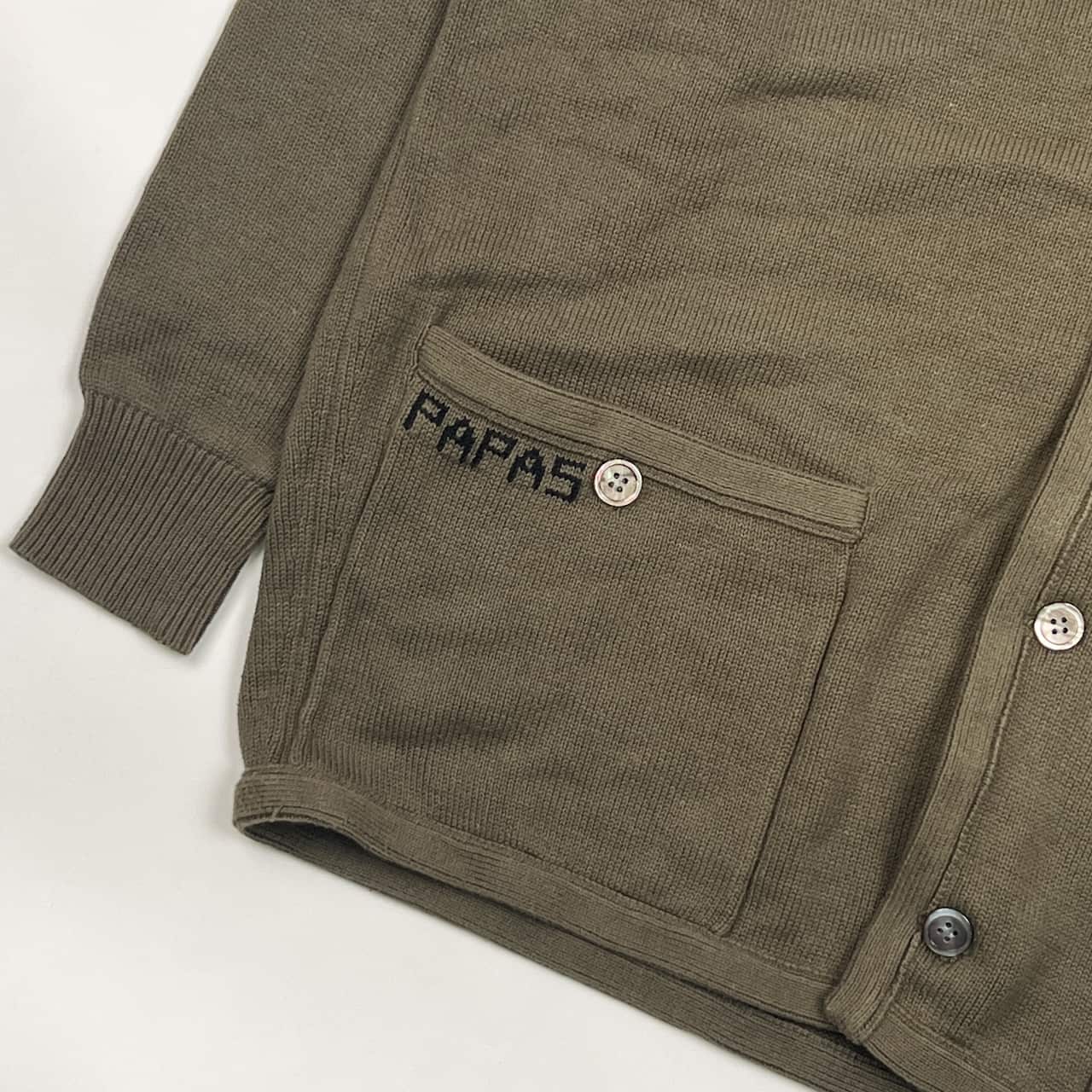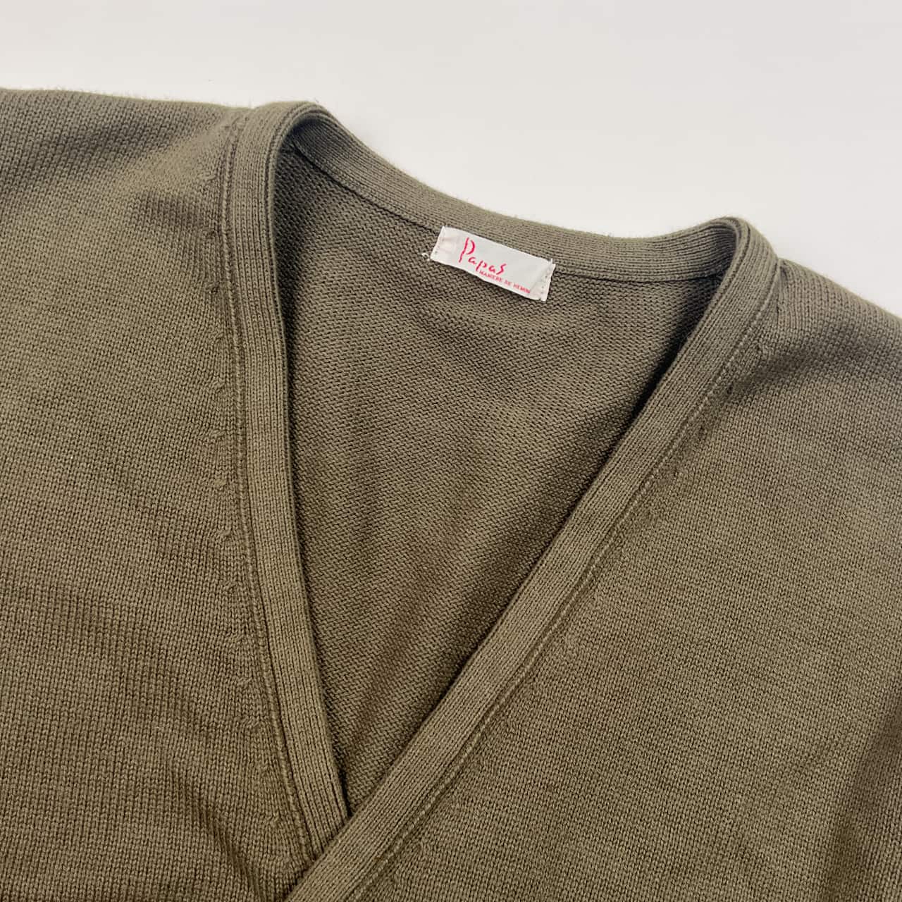 Papas パパス Vネック コットン ニット カーディガン /カーキ系 メンズ