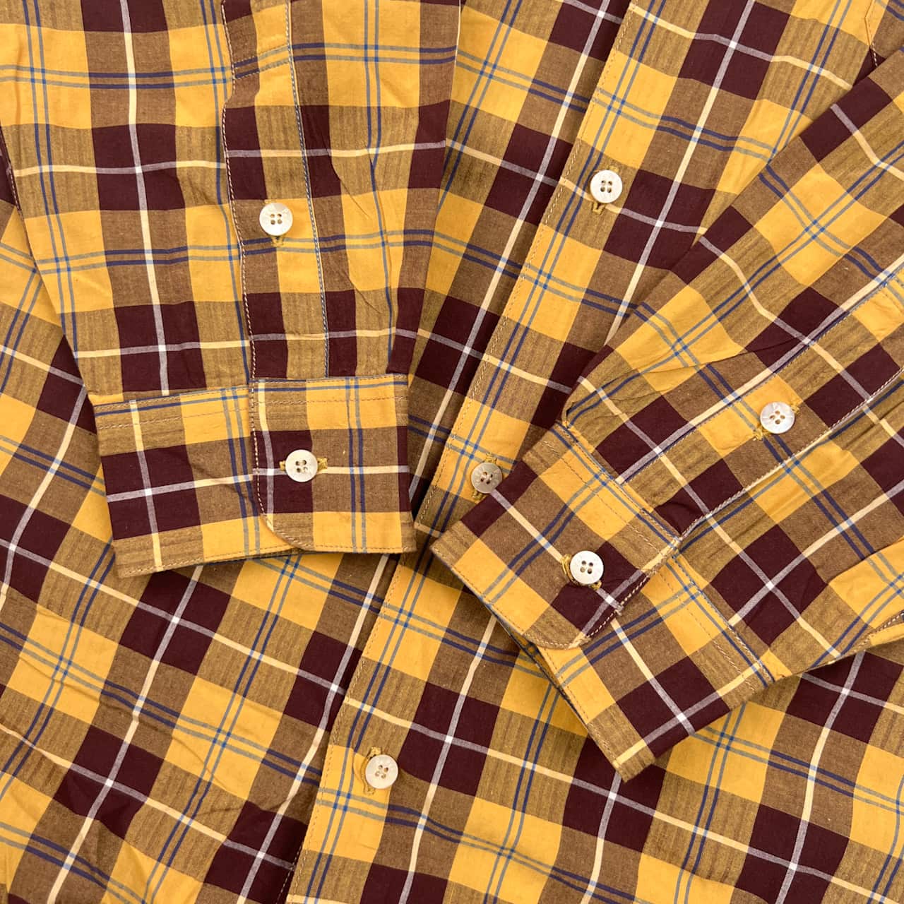 Papas パパス P sport チェック 長袖シャツ L/イエロー×ブラウン 系 メンズ