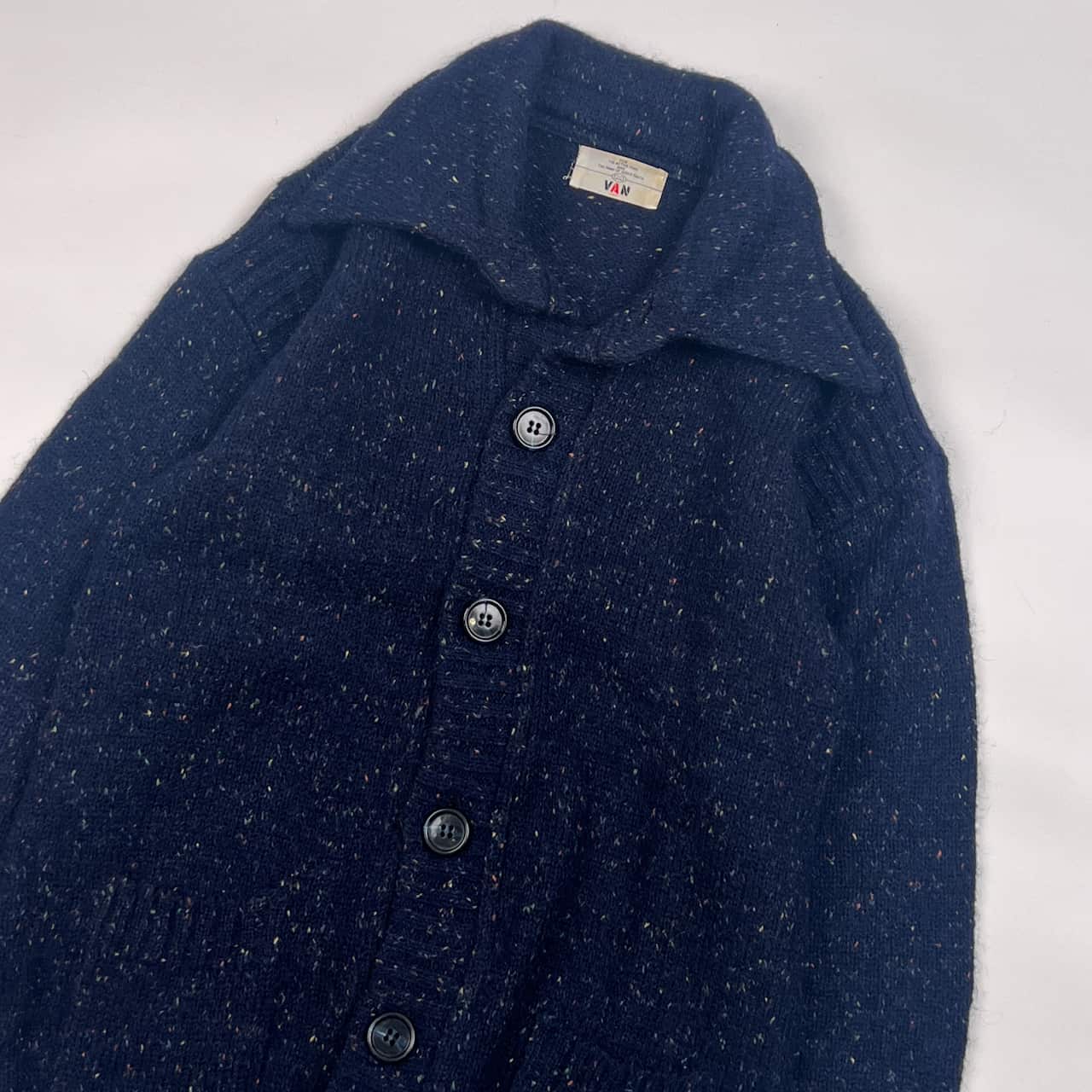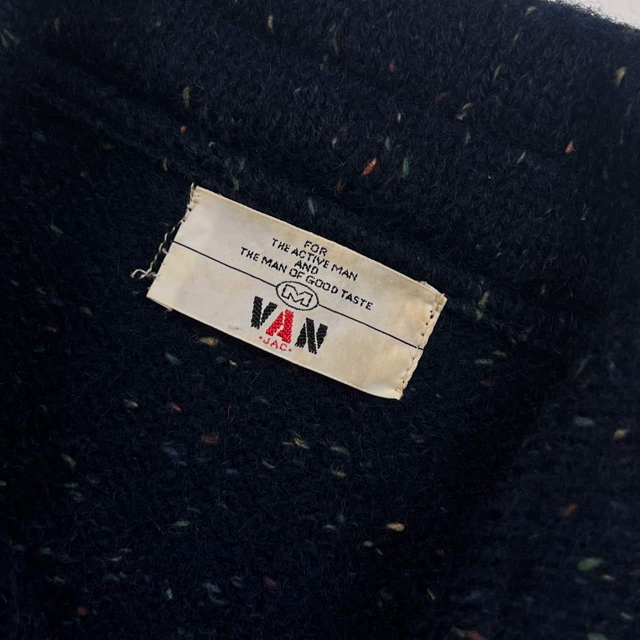 90s VAN JAC ヴァンヂャケット ネップ ウール ニット カーディガン M/ネイビー メンズ ビンテージ