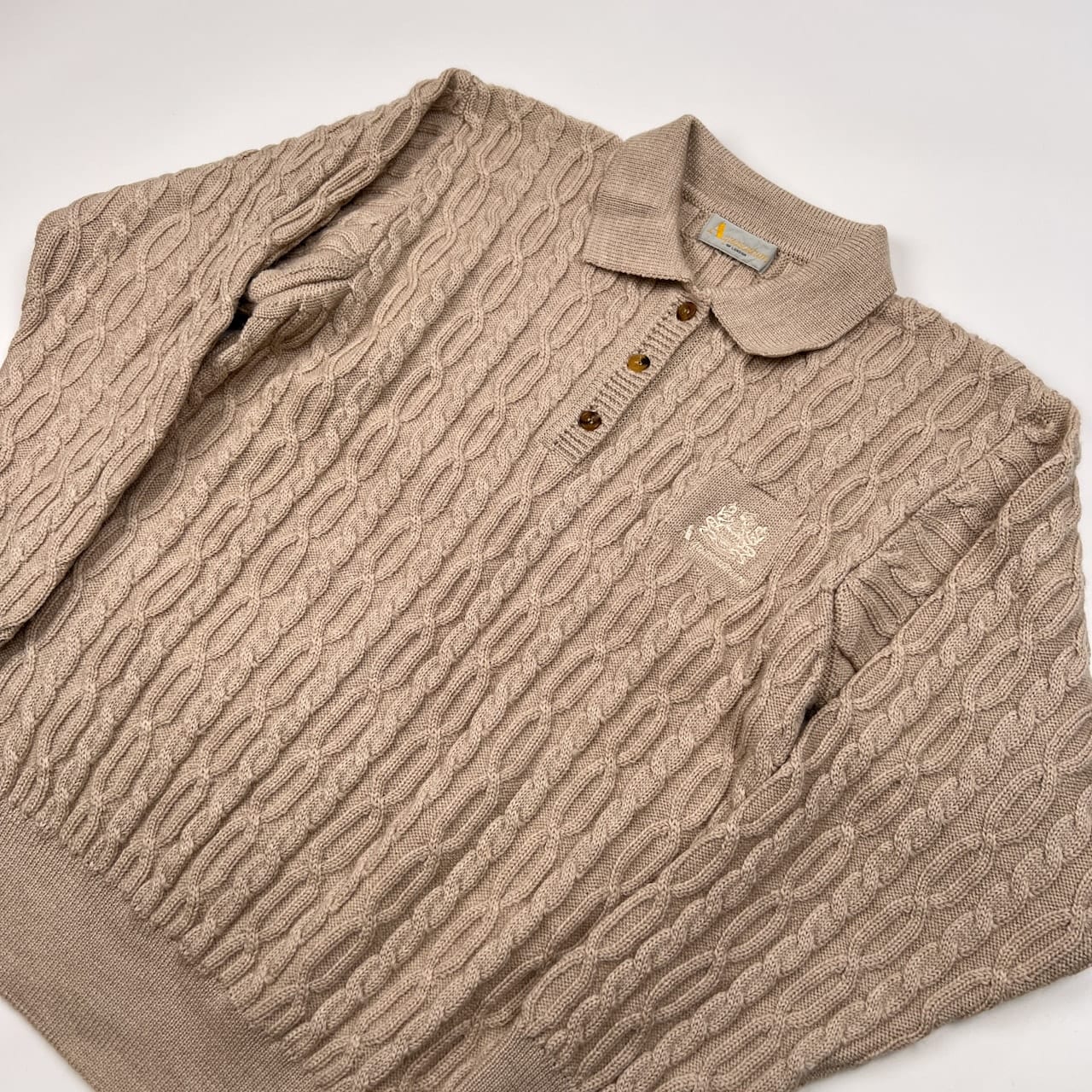 美品 Aquascutum アクアスキュータム ロゴ刺繍 ケーブル編み ウールニットセーター /ビンテージ/ベージュ/D-TK1200