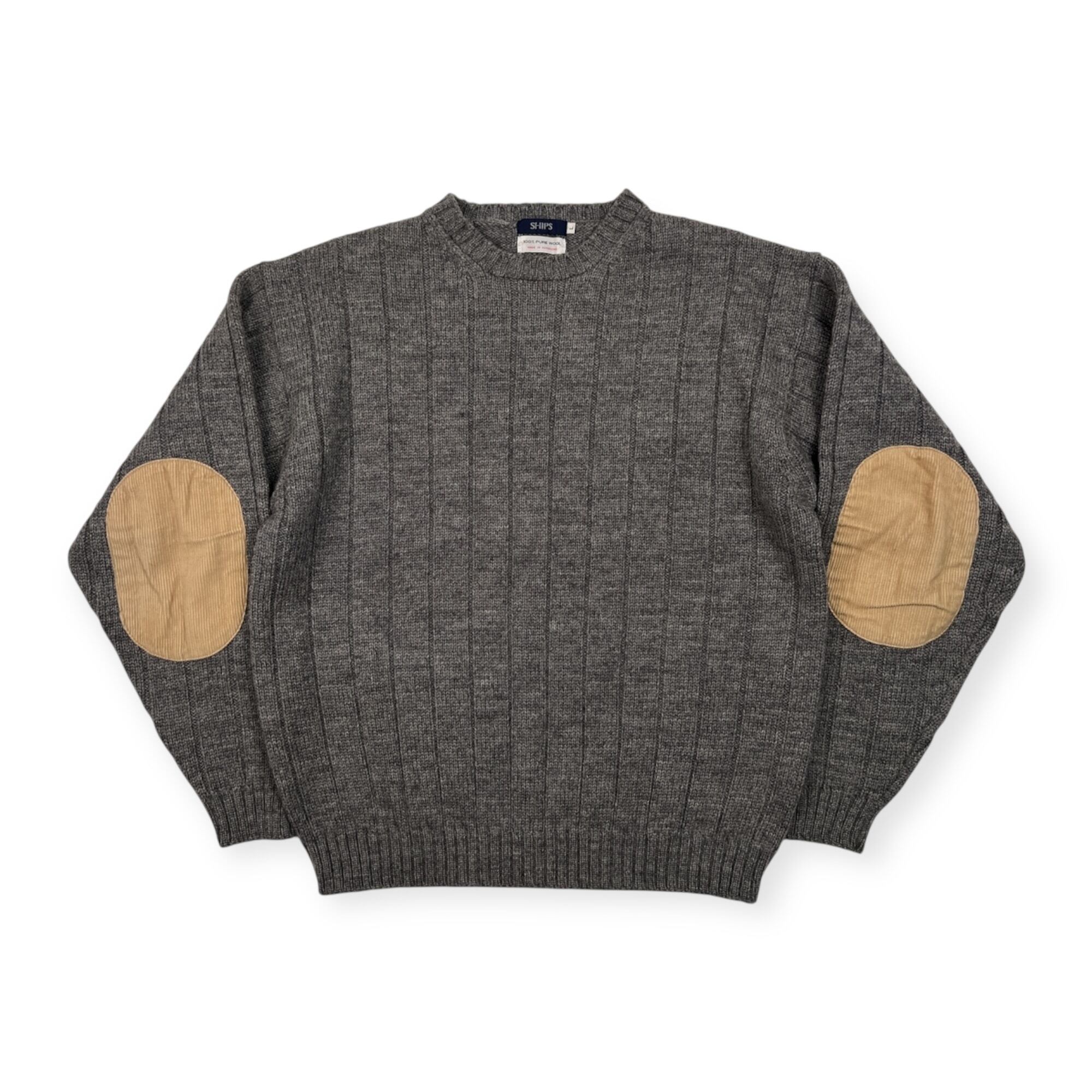 SHIPS シップス エルボーパッチ コーデュロイ ピュア ウールニットセーター サイズ L /メンズ/グレー