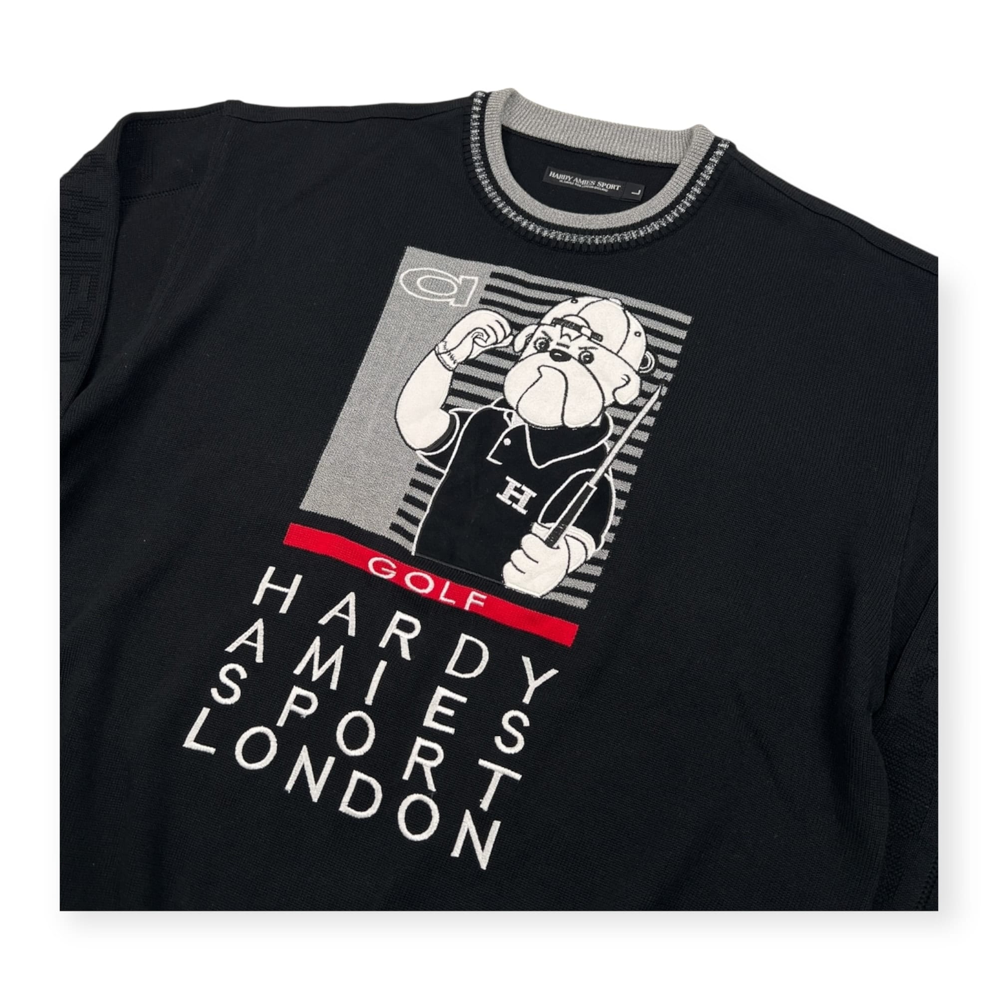 美品 HARDY AMIES SPORT ハーディエイミス スポーツ BIGキャラ ゴルフ刺繍 コットンニット セーター サイズ L /ブラック