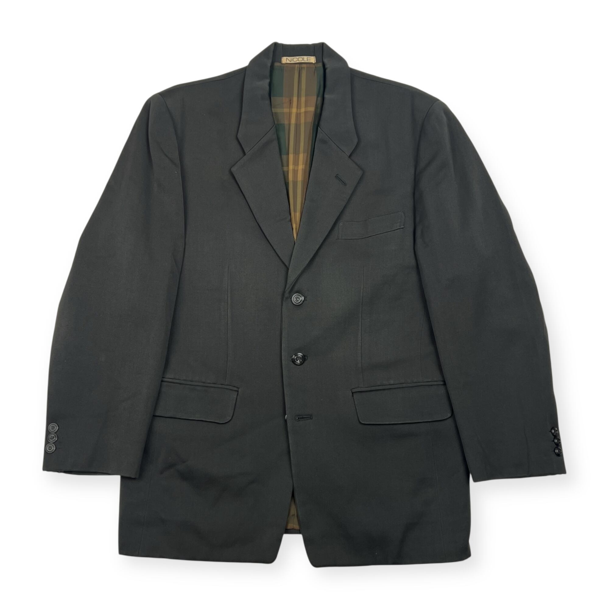 80s monsieur NICOLE ムッシュ ニコル 裏ストライプ 3B テーラードジャケット M/ダークグリーン グレー メンズ ビンテージ