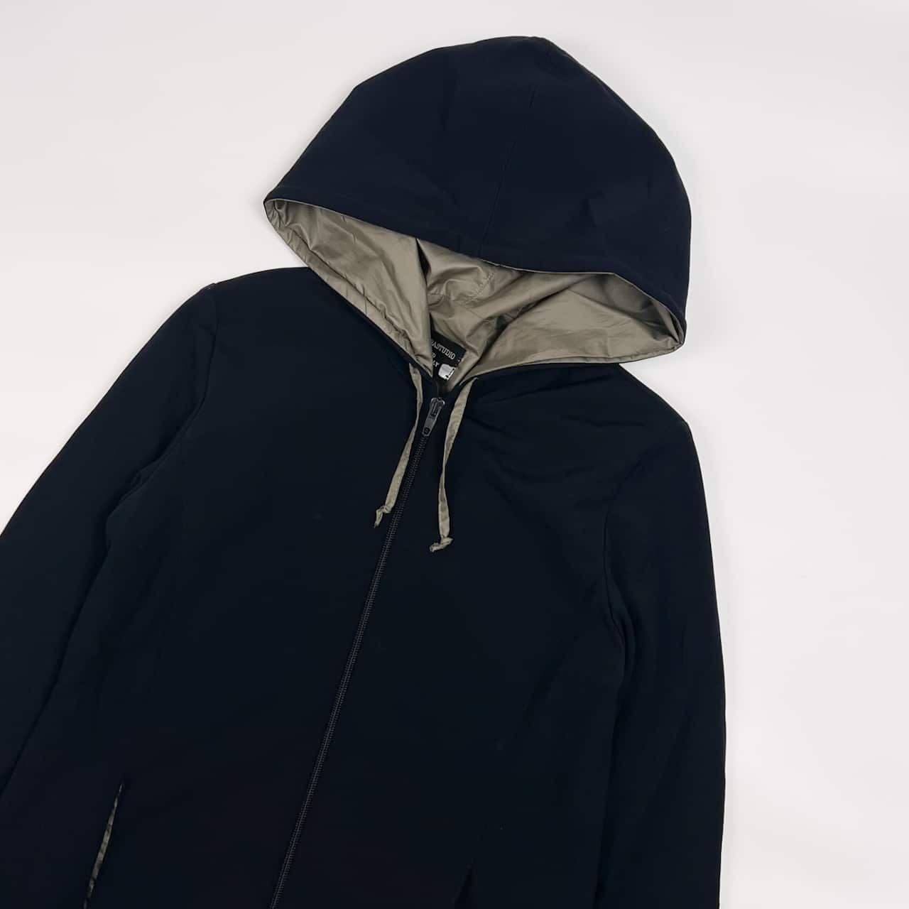 イタリア製 PIANURASTUDIO ピアヌラストゥーディオ 重ね着風 デザイン フード パーカー ジャケット 40/ブラック レディース