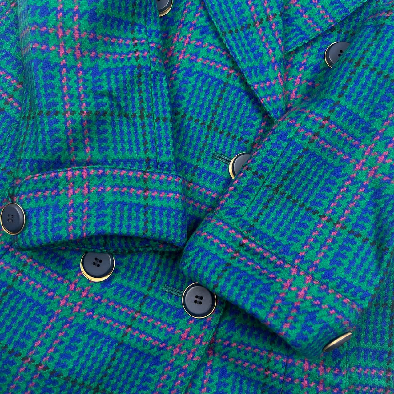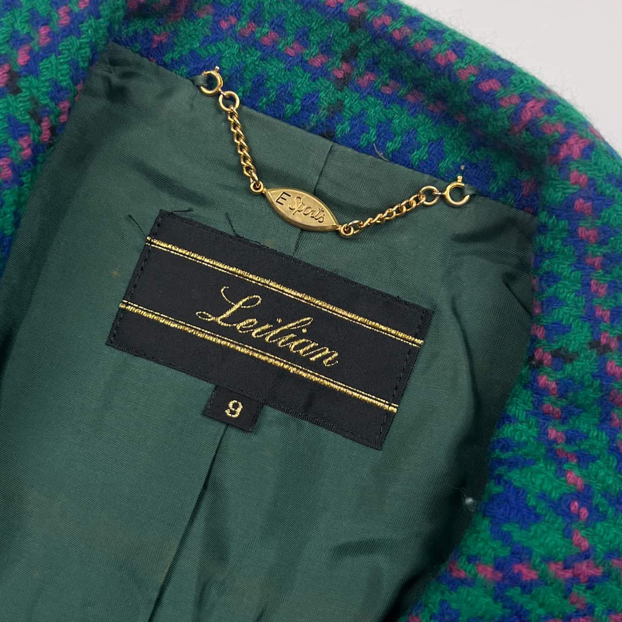 Leilian レリアン otten生地 チェック ウール ダブルジャケット 9/グリーン レディース レトロ