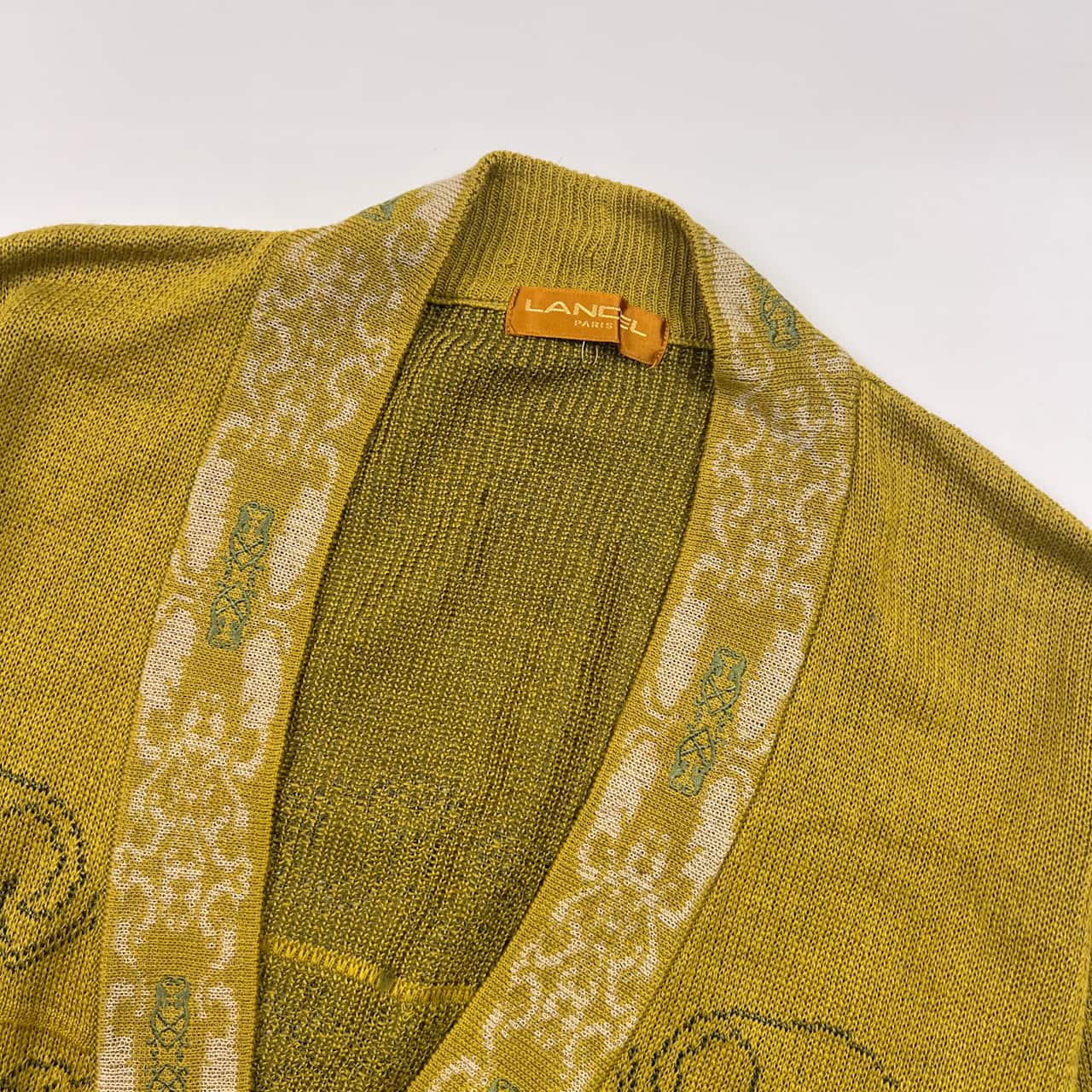 リネン混 LANCEL ランセル ペイズリー風 Vネック ニット カーディガン M/マスタード系 メンズ