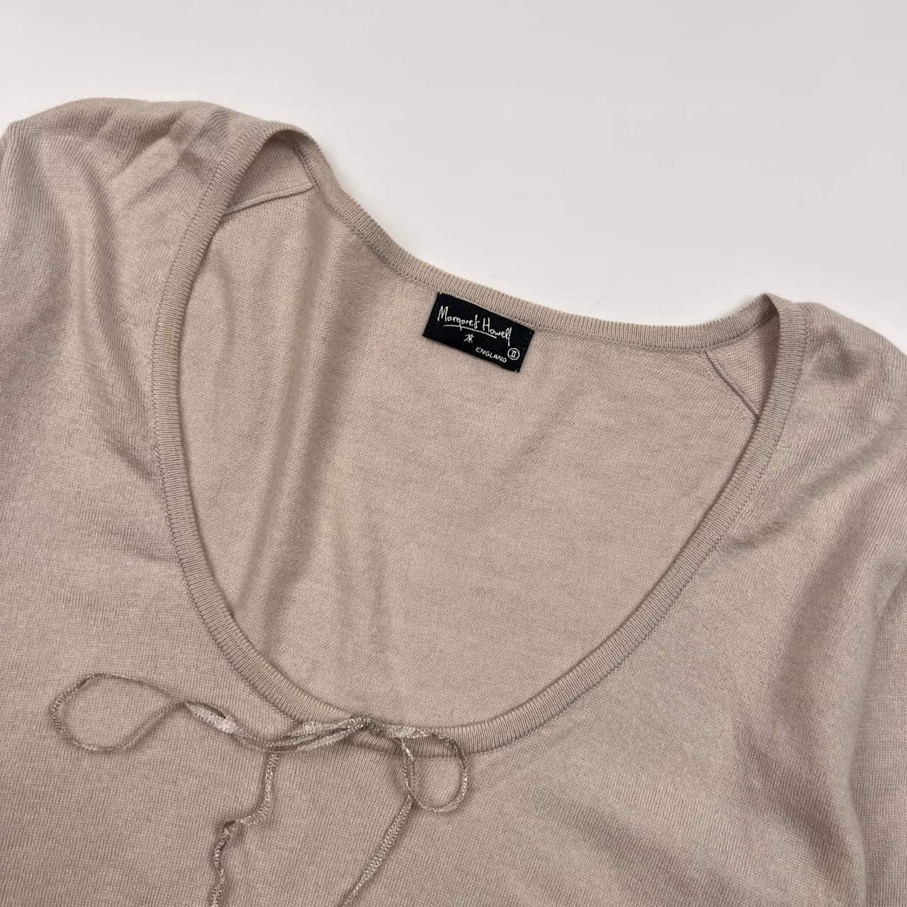 カシミヤ混 MARGARET HOWELL マーガレットハウエル リボン 薄手 七分袖 ニット セーター 2/グレー ベージュ 系レディース