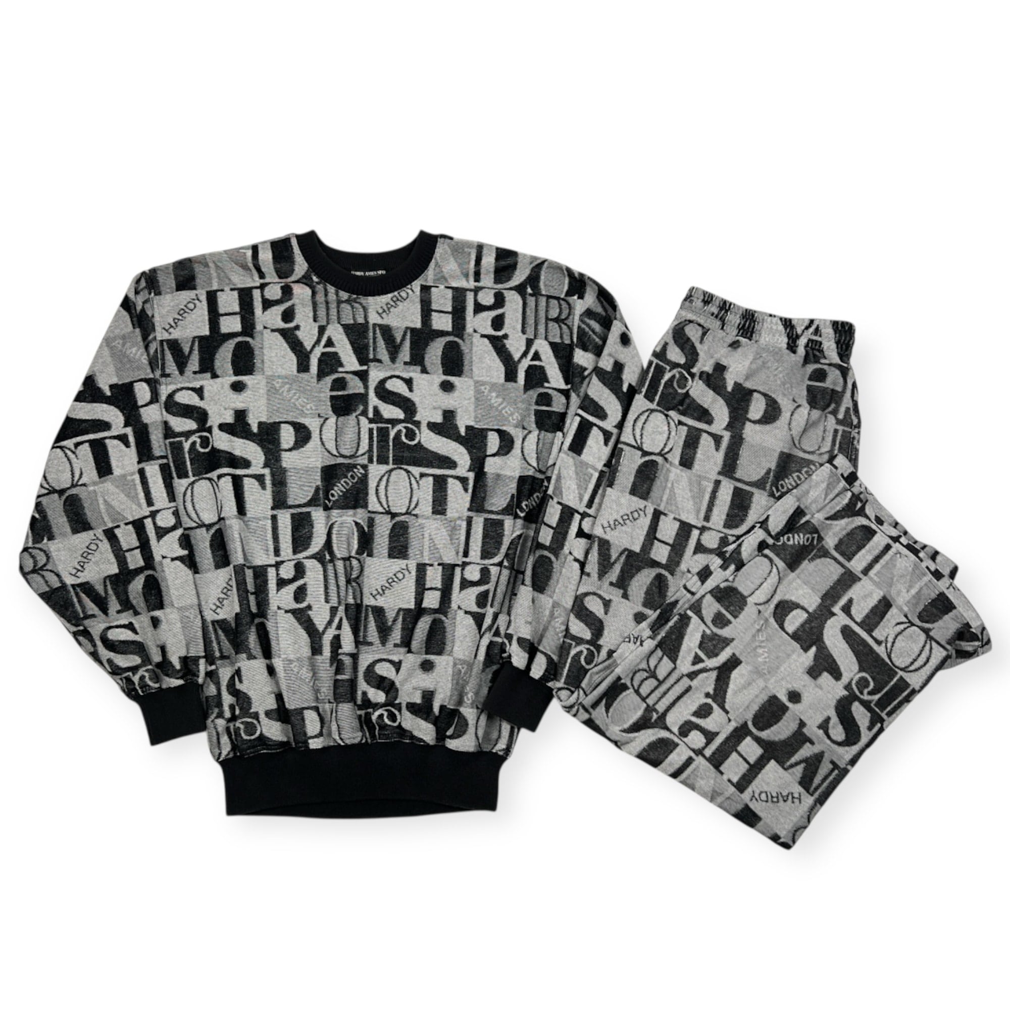 上下セット HARDY AMIES ハーディエイミス 英字総柄 セットアップ ジャージ スウェット トレーナー & パンツ サイズ L
