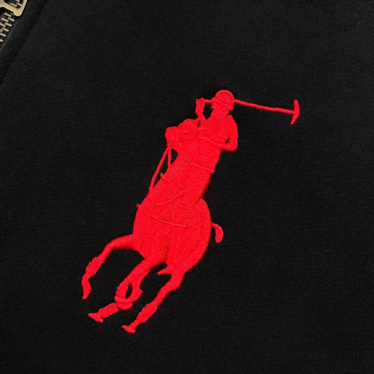 Polo by Ralph Lauren ポロ ラルフローレン ビッグポニー ダブルジップ スウェット パーカー L /ブラック 裏起毛 刺繍ロゴ 袖ゼッケン