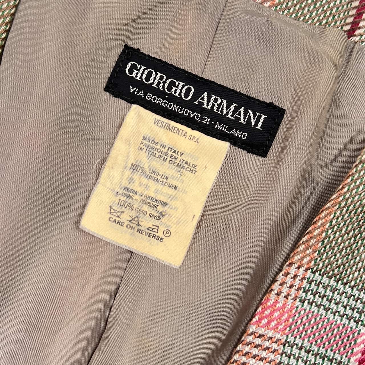 イタリア製 リネン100% GIORGIO ARMANI ジョルジオアルマーニ チェック ジャケット 38/ピンク×グレー レディース ビンテージ