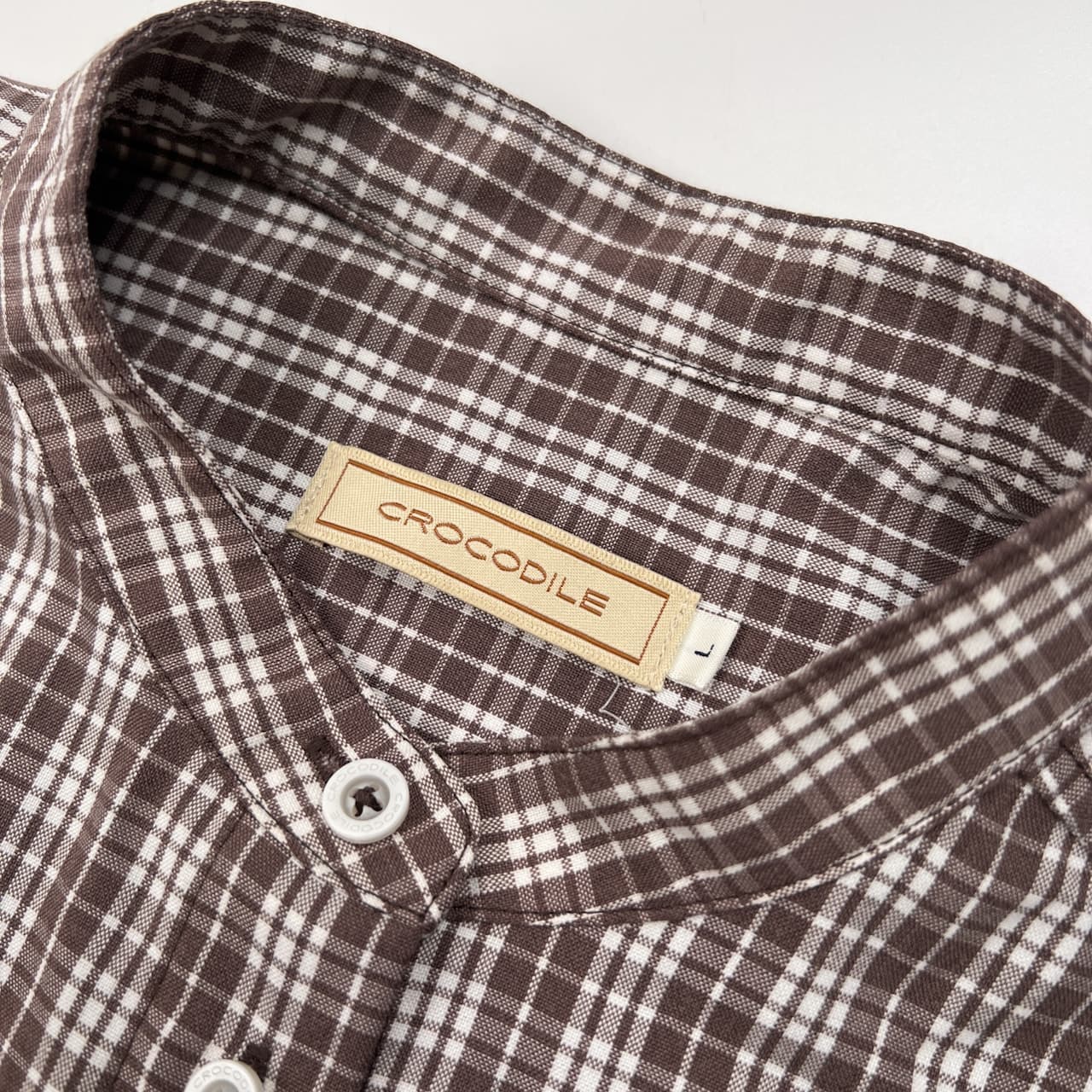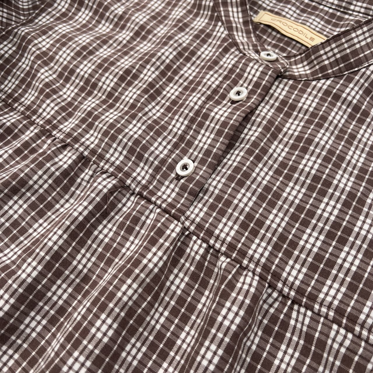 CROCODILE クロコダイル チェック バンドカラー シャツ チェニック サイズ L /レディース/スタンドカラー/ブラウン