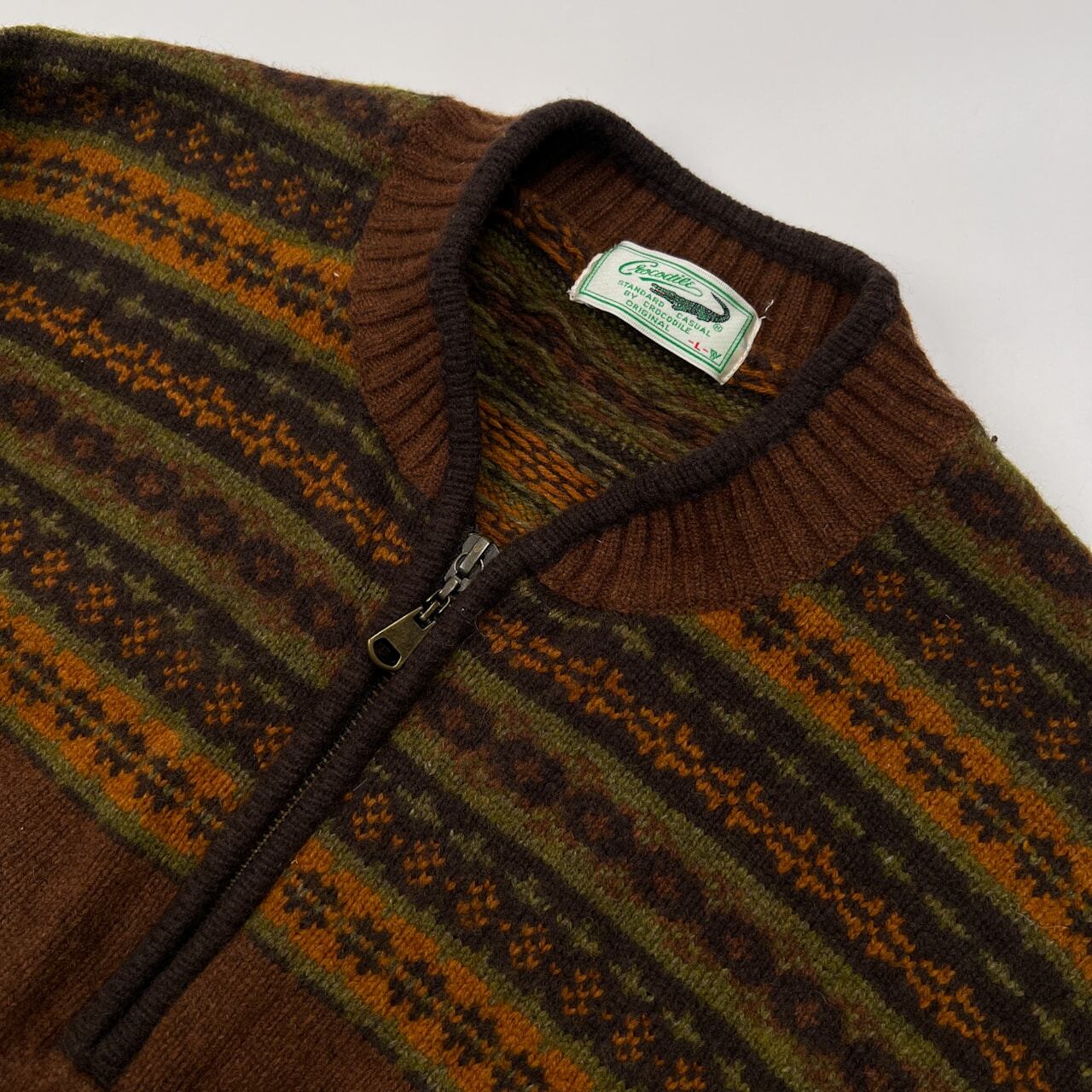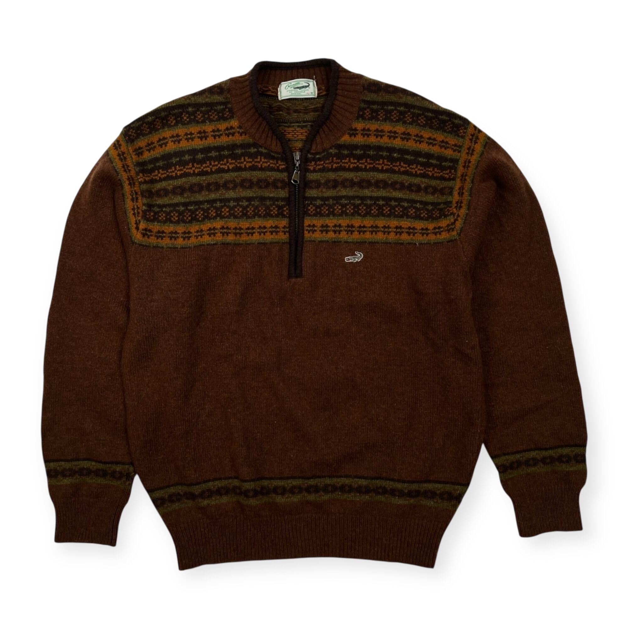 CROCODILE クロコダイル フェアアイル ハーフジップ ウールニットセーター サイズ L /メンズ/ブラウン