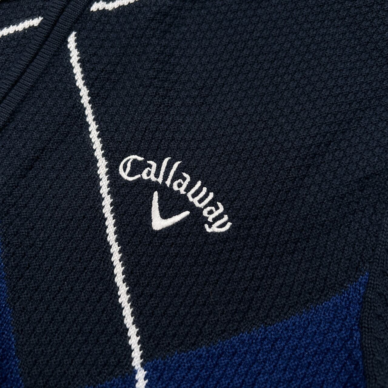 タグ付き 未使用品 Callaway キャロウェイ アーガイル ダブルジップ ニット ジャケット セーター サイズ L /ブルー×ネイビー/ゴルフ