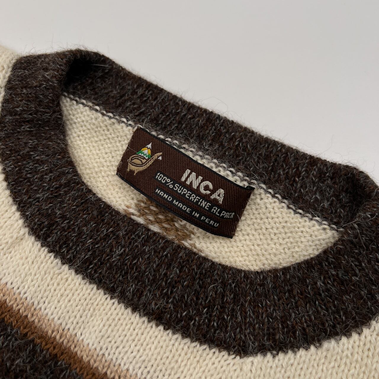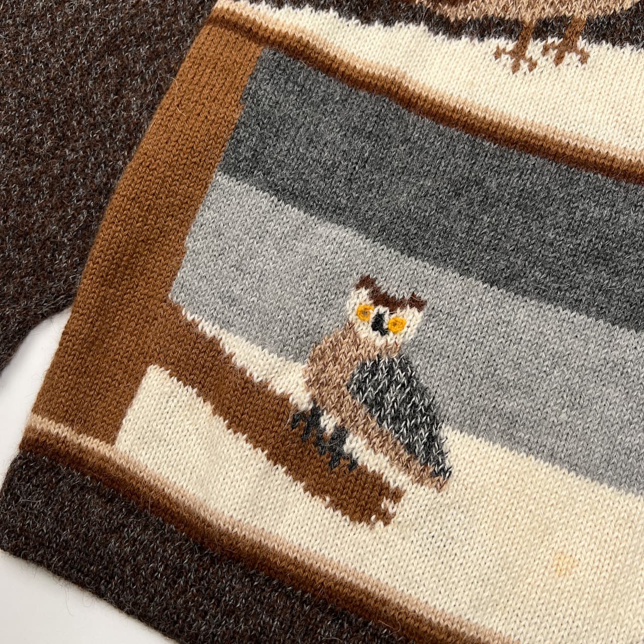 ペルー製 アルパカ100% INCA インカ フクロウ柄 鳥柄 ニットセーター /レディース/スーパーファインアルパカ