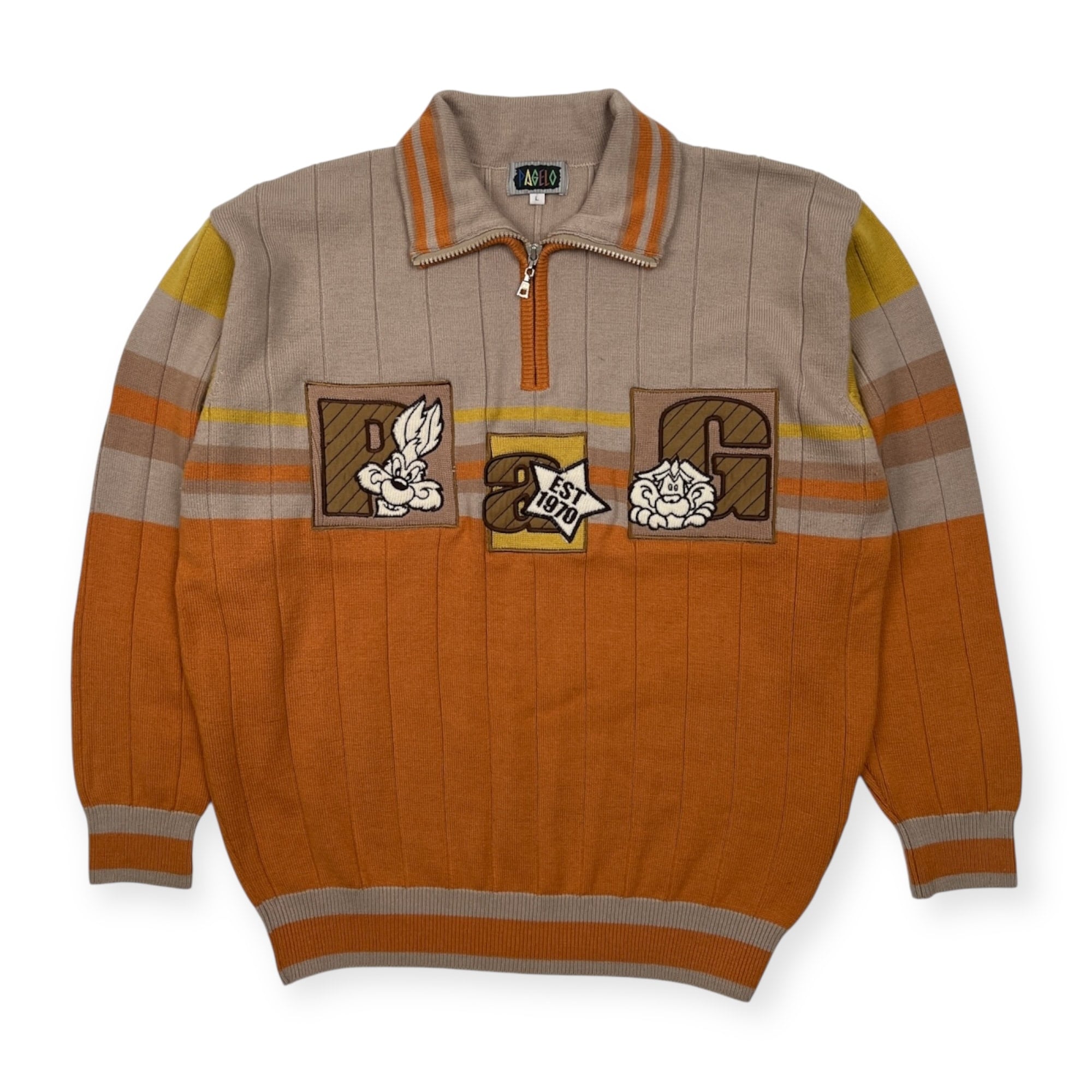 PAGELO パジェロ キャラ刺繍 ハーフジップ ウールニットセーター サイズ L /メンズ/オレンジ/アンジェロ