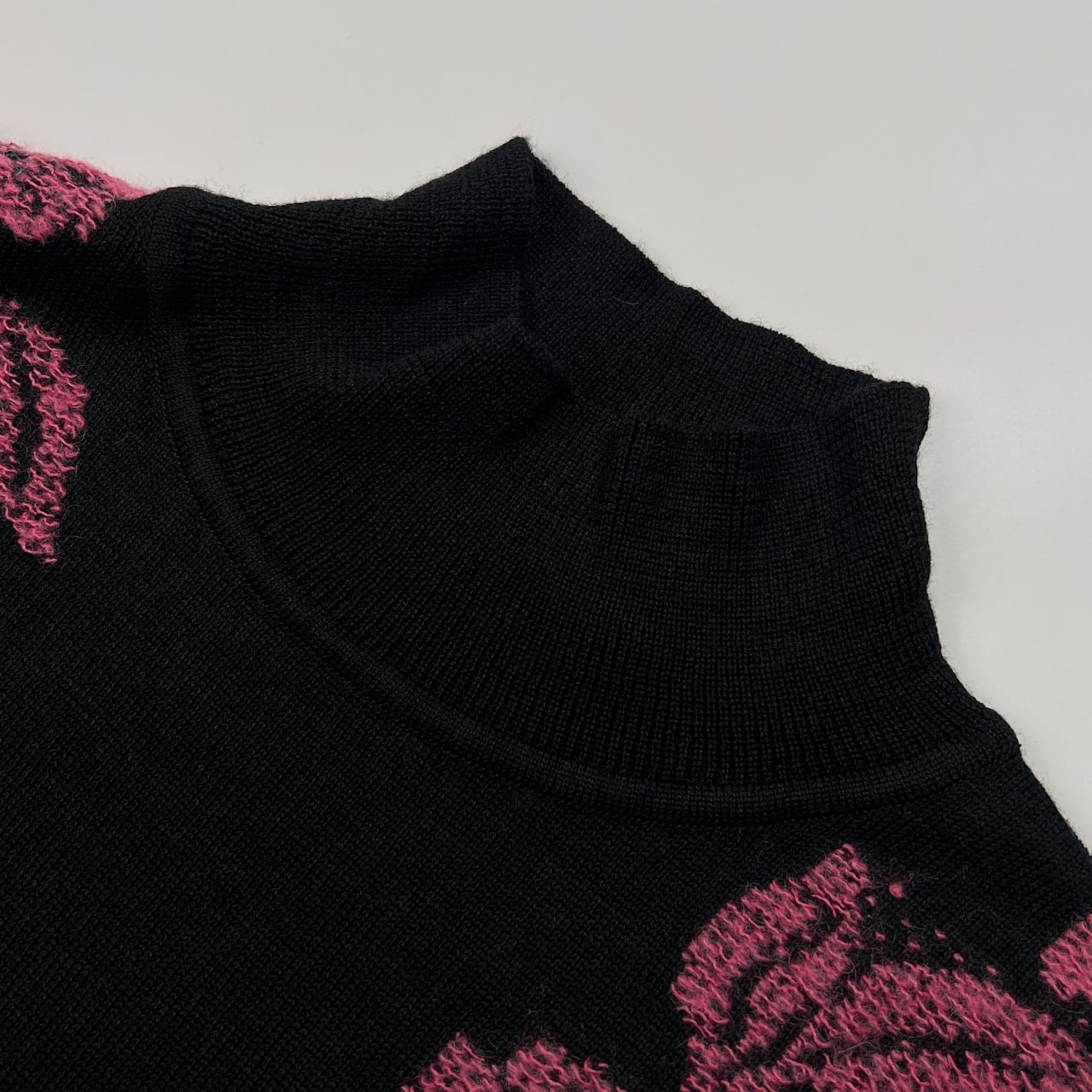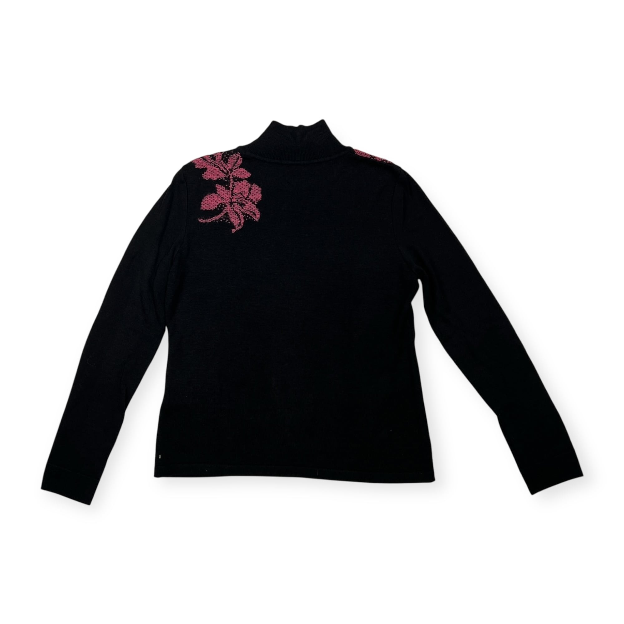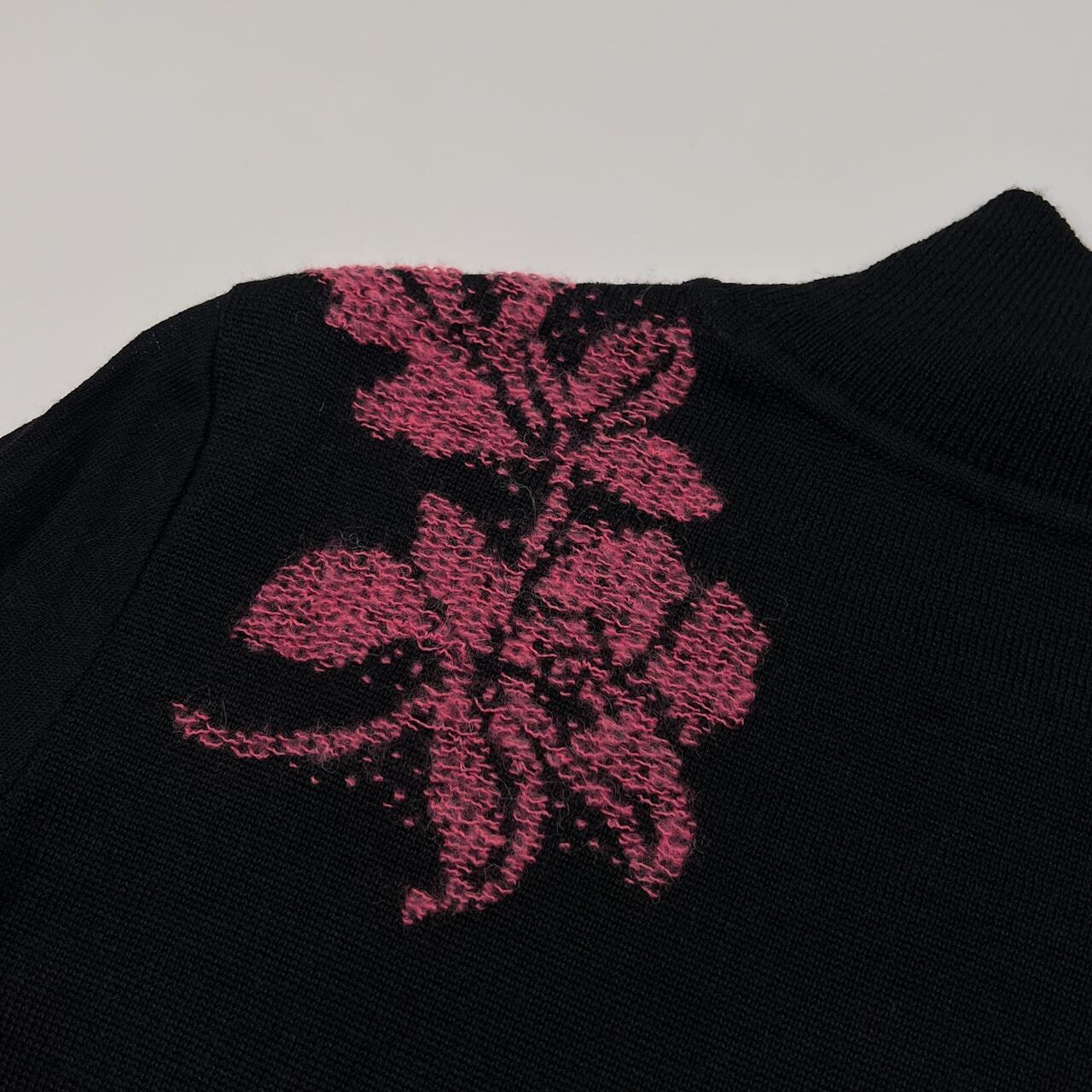LEONARD レオナール 花柄 ハイネック ハイゲージ ウールニットセーター サイズ 40 /ブラック×ピンク