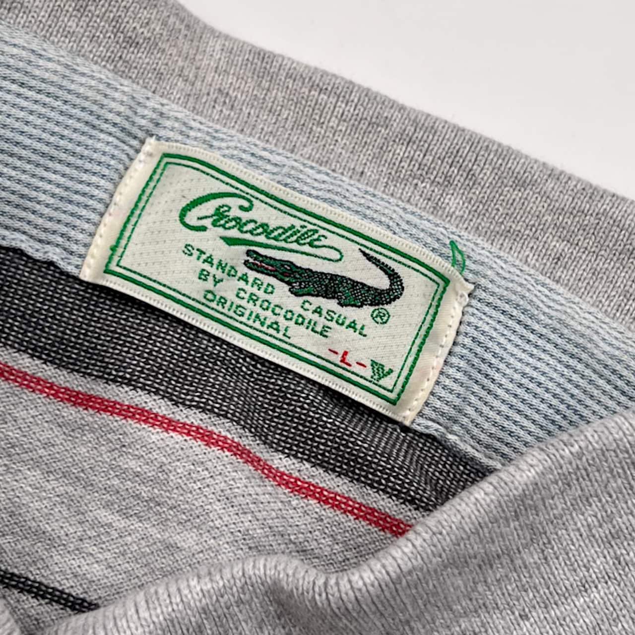 Crocodile クロコダイル ボーダー 鹿の子 長袖 ポロシャツ L/グレー メンズ