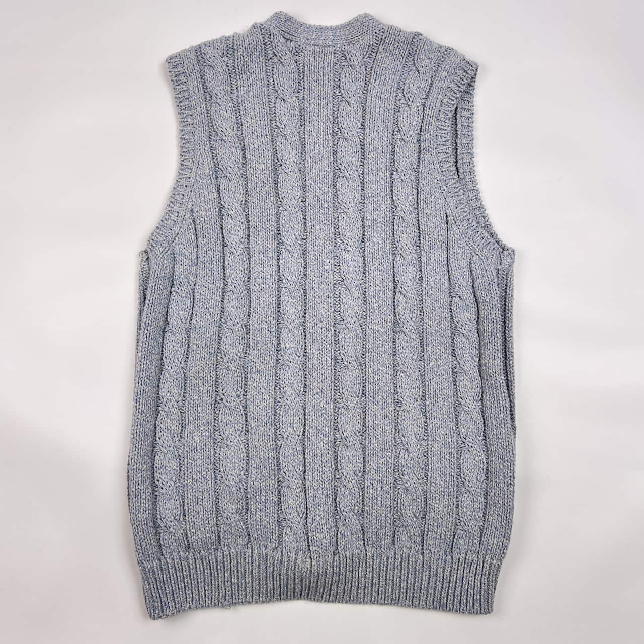 シルク混 Papas パパス ケーブル編み ニット ベスト M/水色系 メンズ