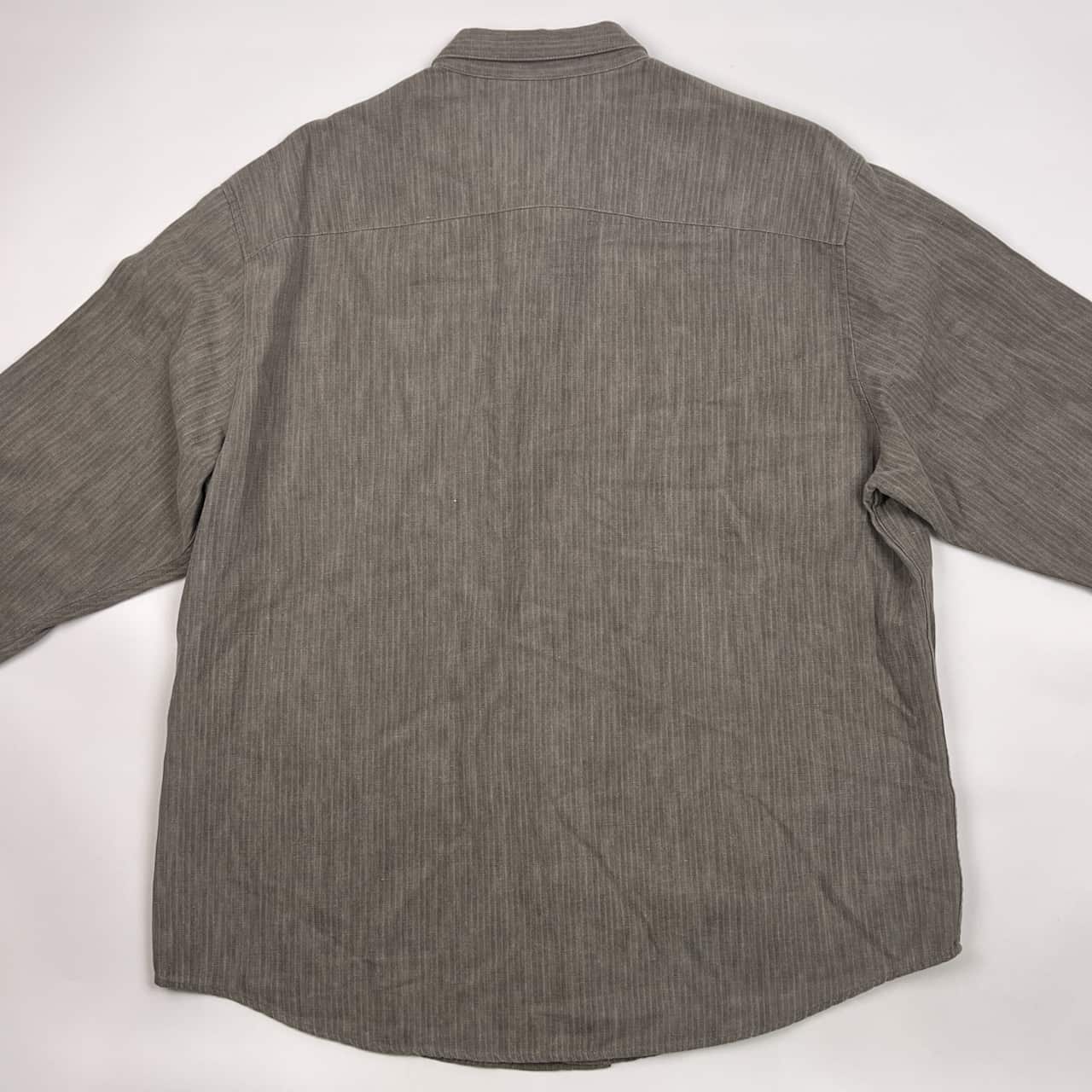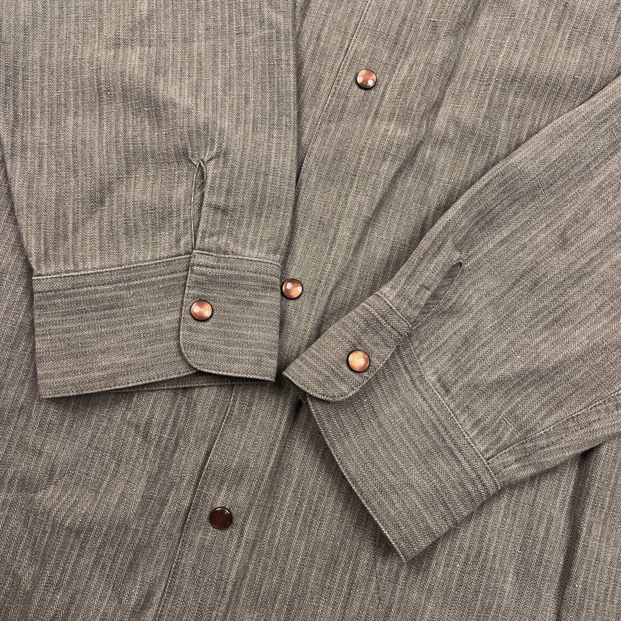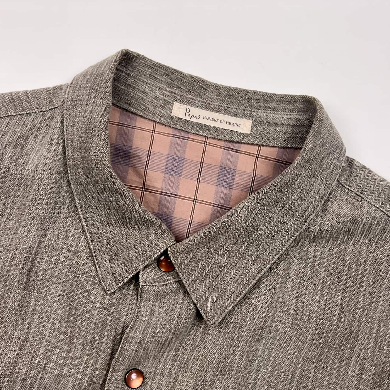 リネン混 Papas パパス ストライプ風 デザイン 長袖シャツ ジャケット M/グレー メンズ