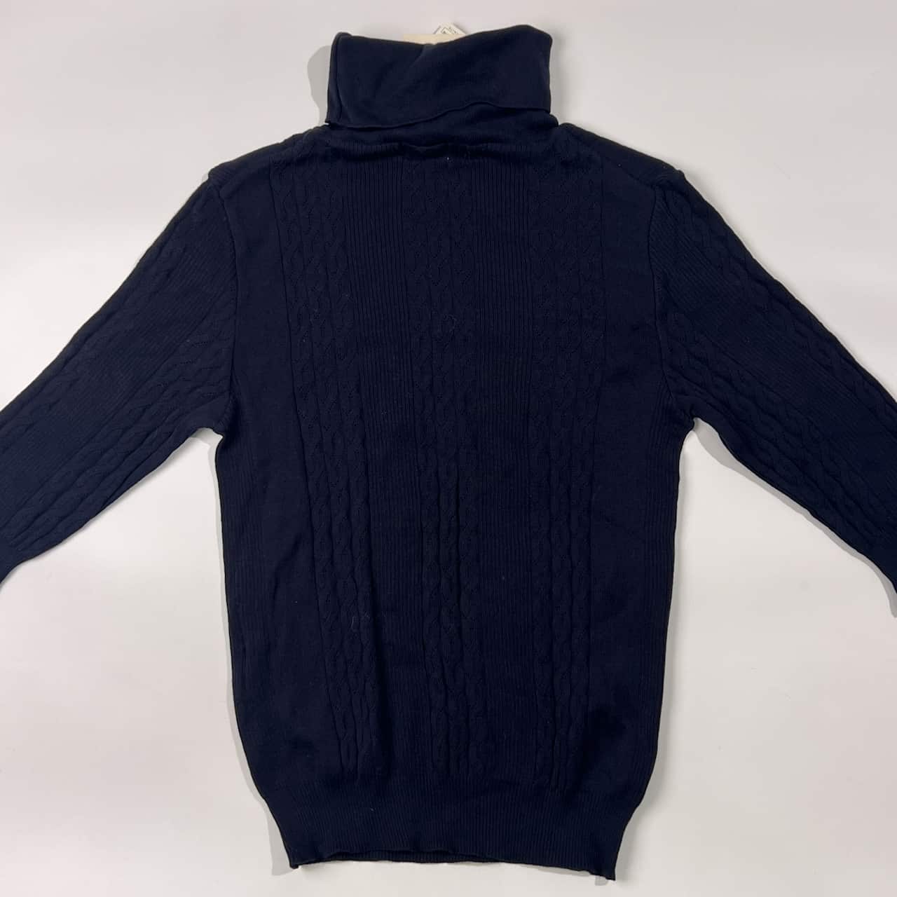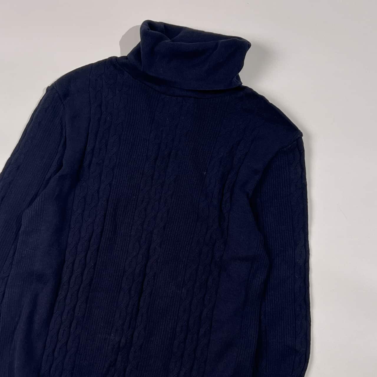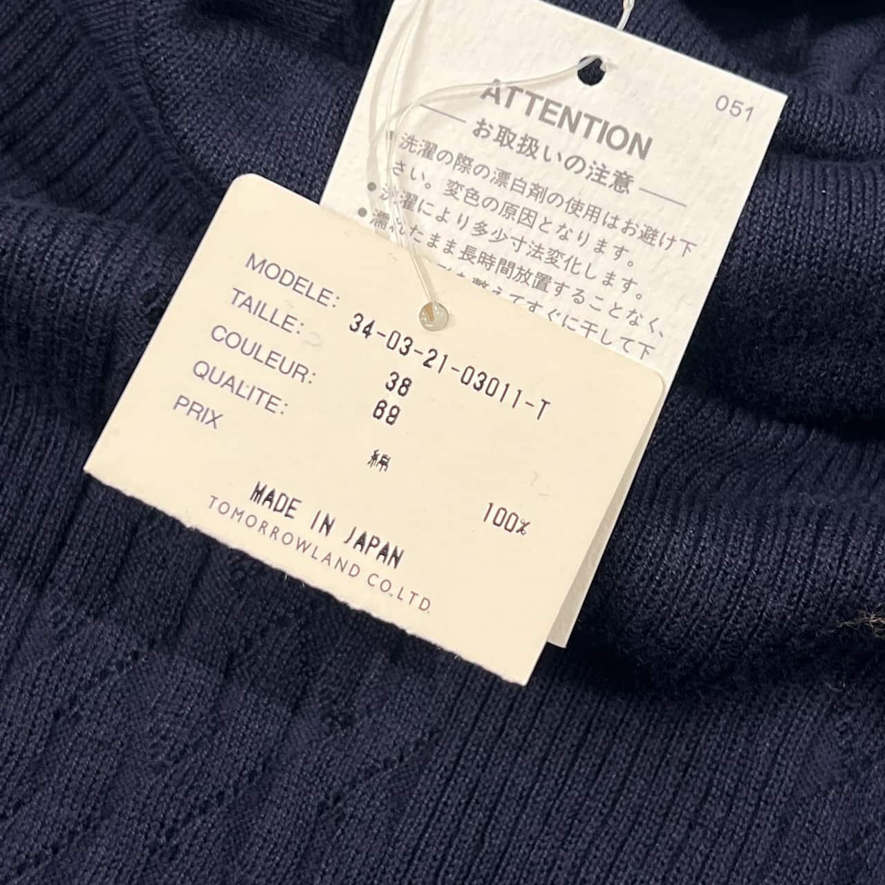 新品 タグ付き TOMORROWLAND トゥモローランド ケーブル編み 7分袖 タートルネック コットン ニット セーター 38/ネイビー レディース