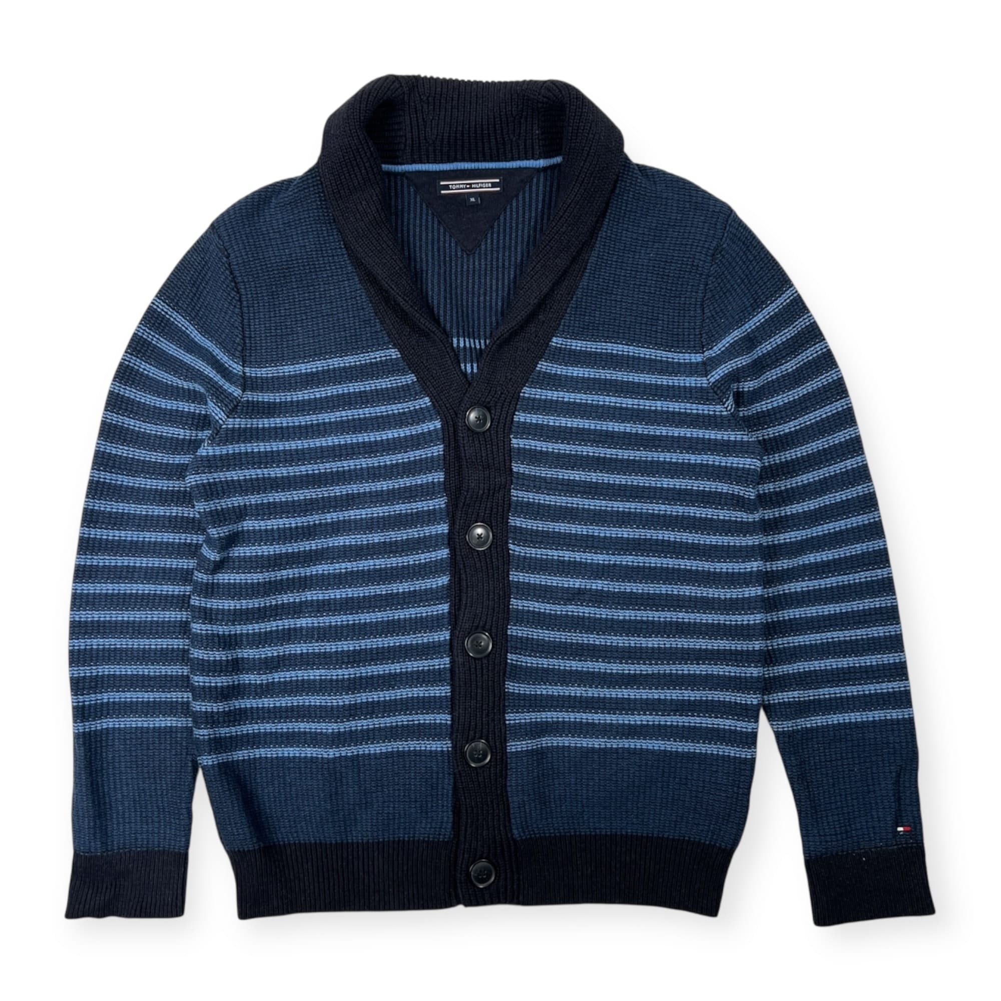 TOMMY HILFIGER トミーヒルフィガー ボーダー柄 ショールカラー コットン ニット カーディガン サイズ XL /ネイビー/メンズ