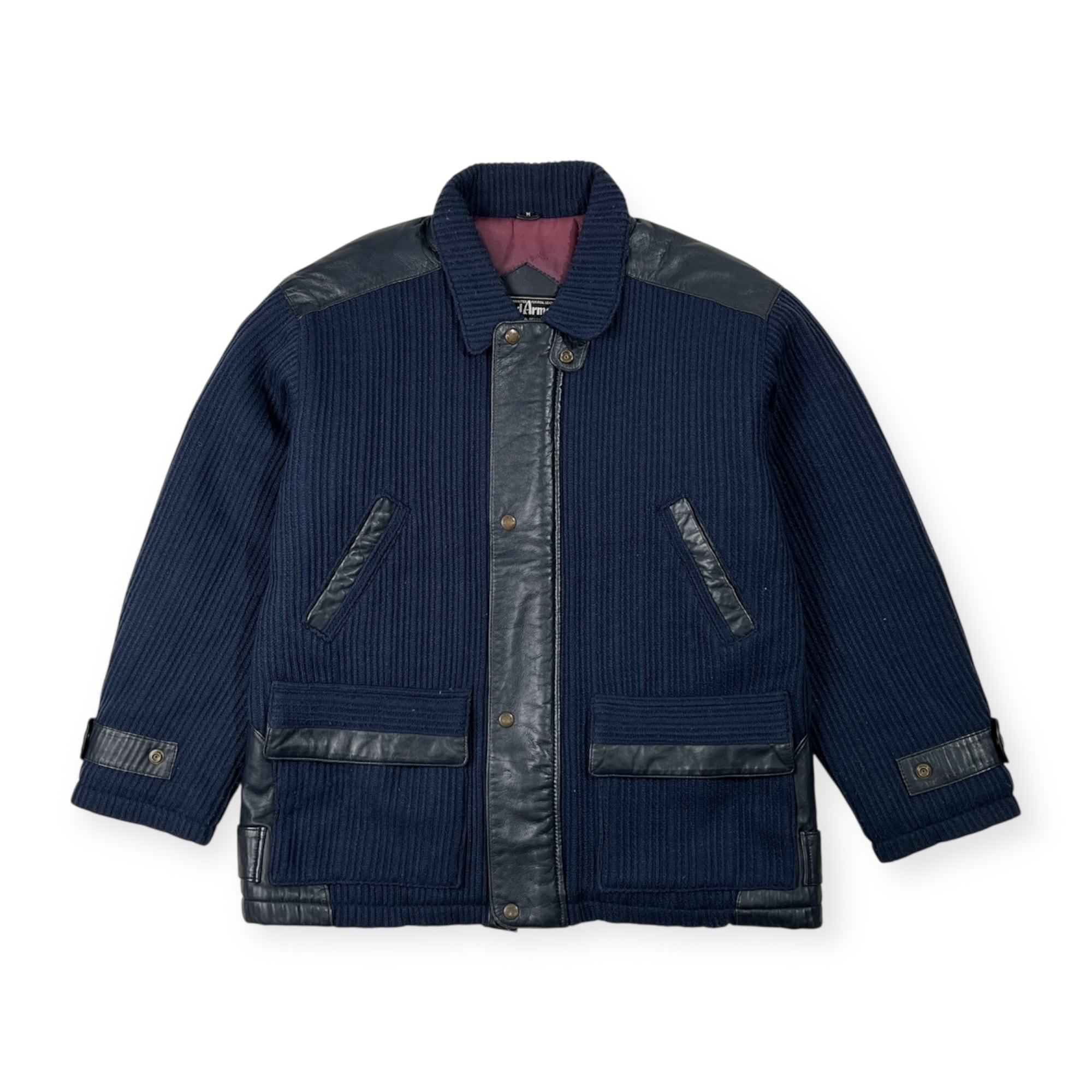 Wind Armor ウィンドアーマー イタリア製生地 羊革 本革 レザー & ニット ジャケット コート サイズ M /ネイビー/ニチワ/ラムレザー