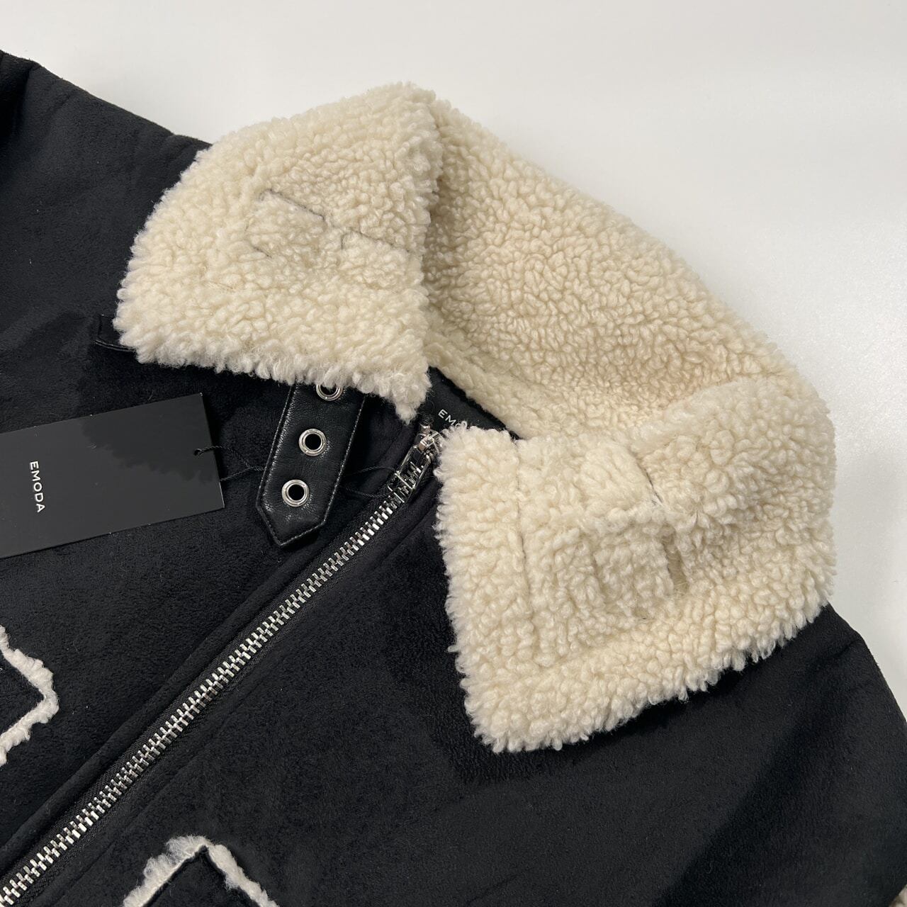 タグ付き 未使用品 EMODA エモダ ショート フェイクムートン ジャケット コート ボア ブルゾン F フリーサイズ /ブラック×アイボリーホワイト