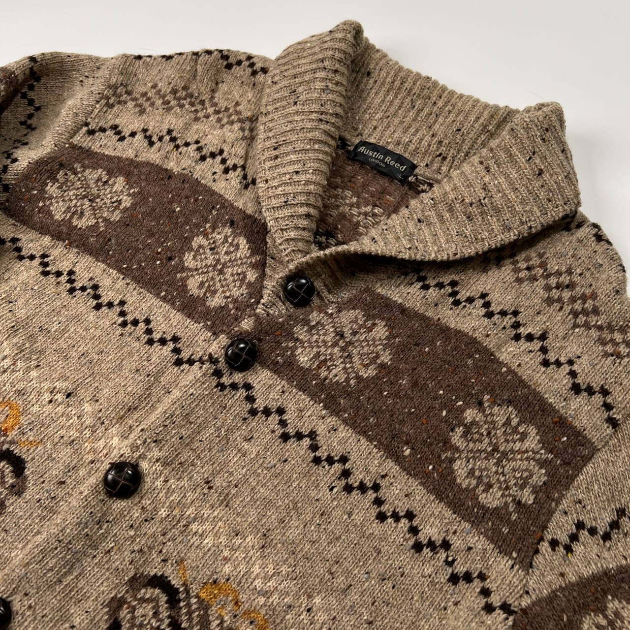 Austin Reed オースティンリード ノルディック ショールカラー ネップ ウールニット カーディガン サイズ L /ベージュ系