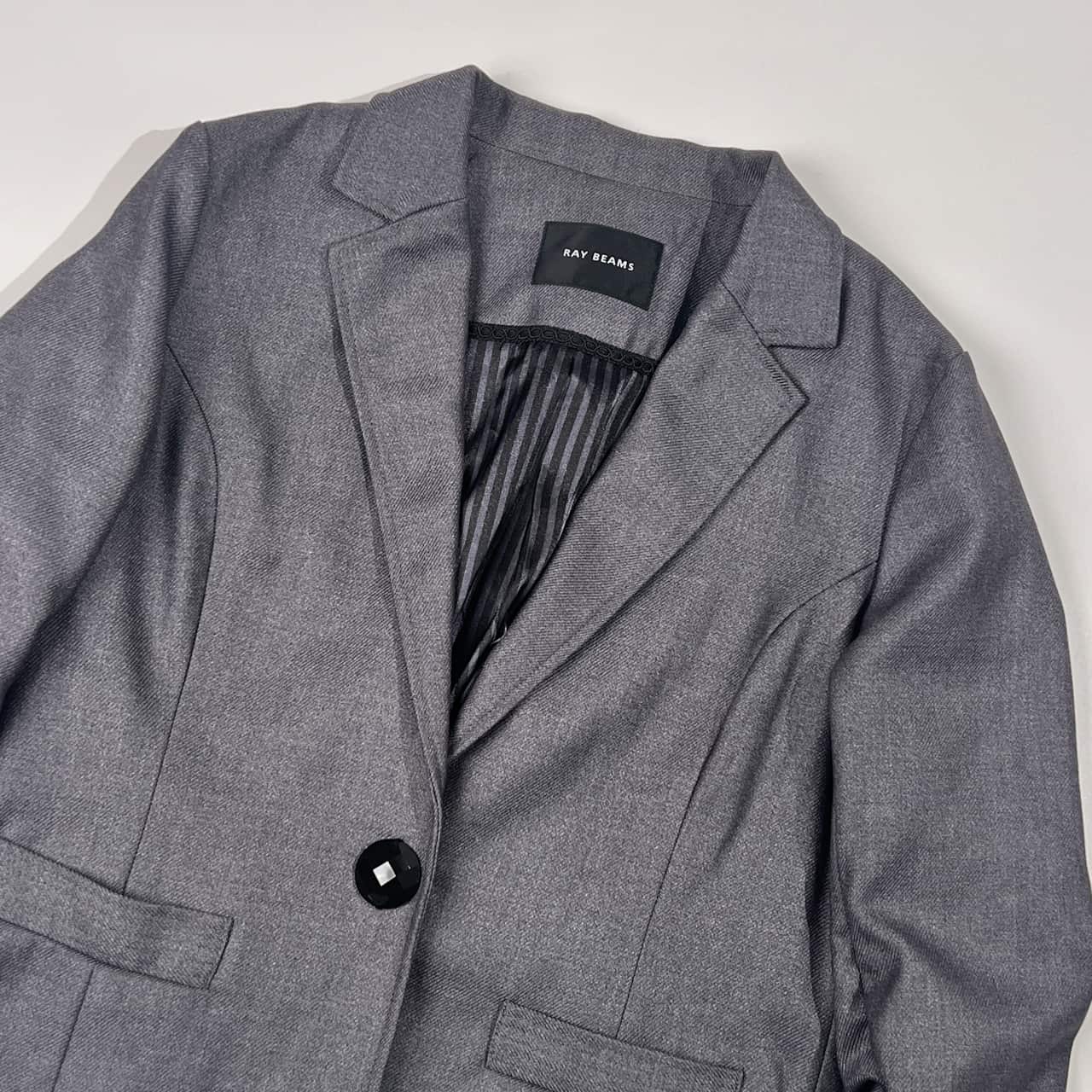 RAY BEAMS レイビームス 裏ストライプ 袖先デザイン ショート丈 ジャケット/グレー レディース