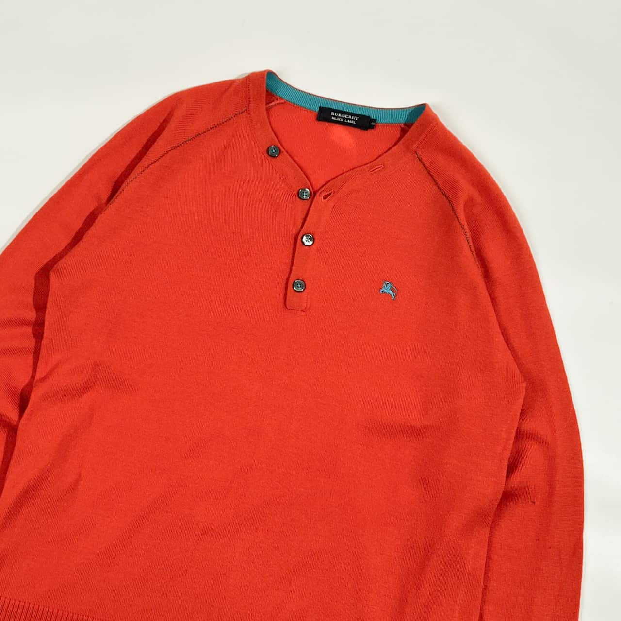 BURBERRY BLACK LABEL バーバリーブラックレーベル ヘンリーネック 羊毛 ニット セーター 2/オレンジ メンズ