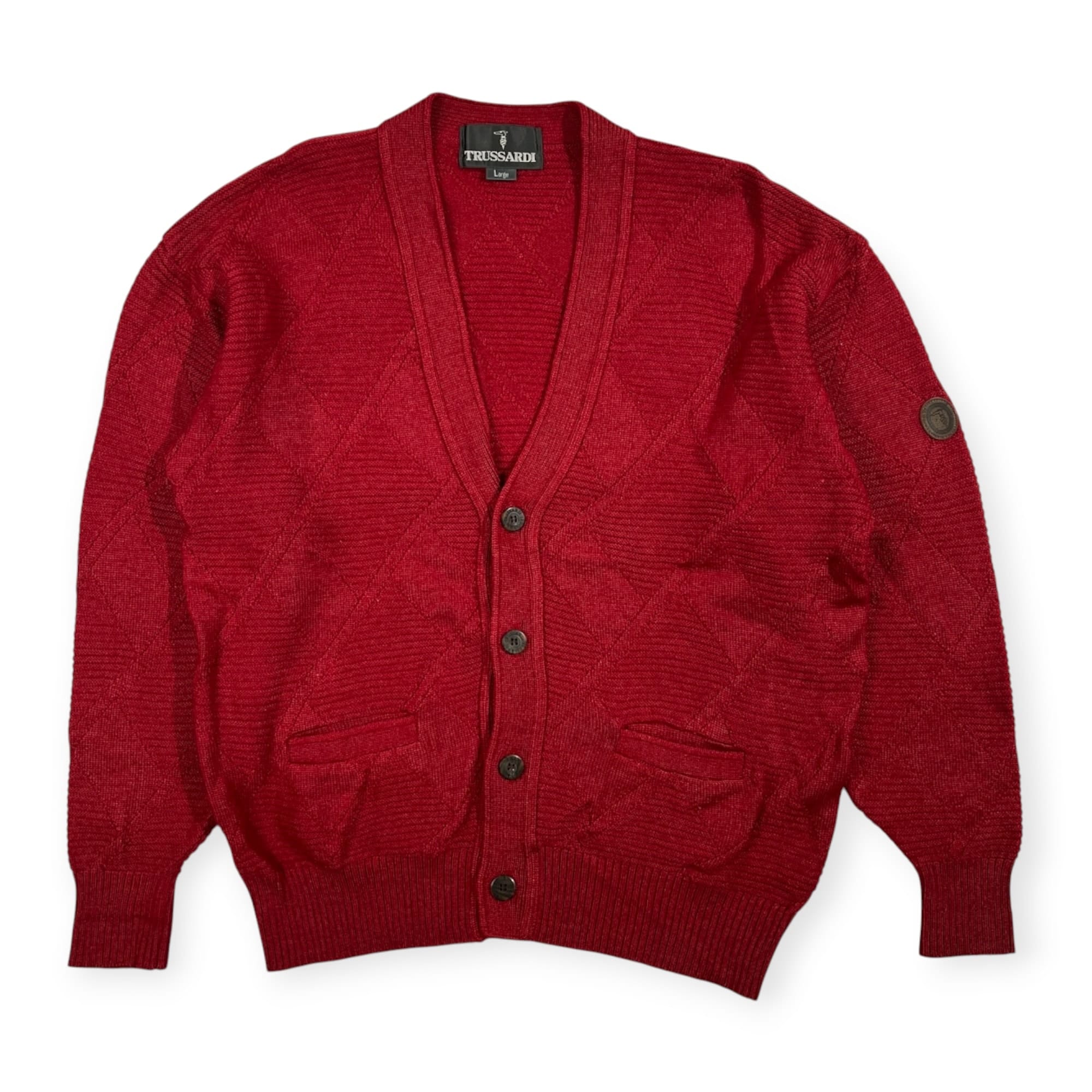 TRUSSARDI トラサルディ アーガイル シルク混 ウールニット カーディガン サイズ L /メンズ/レッド