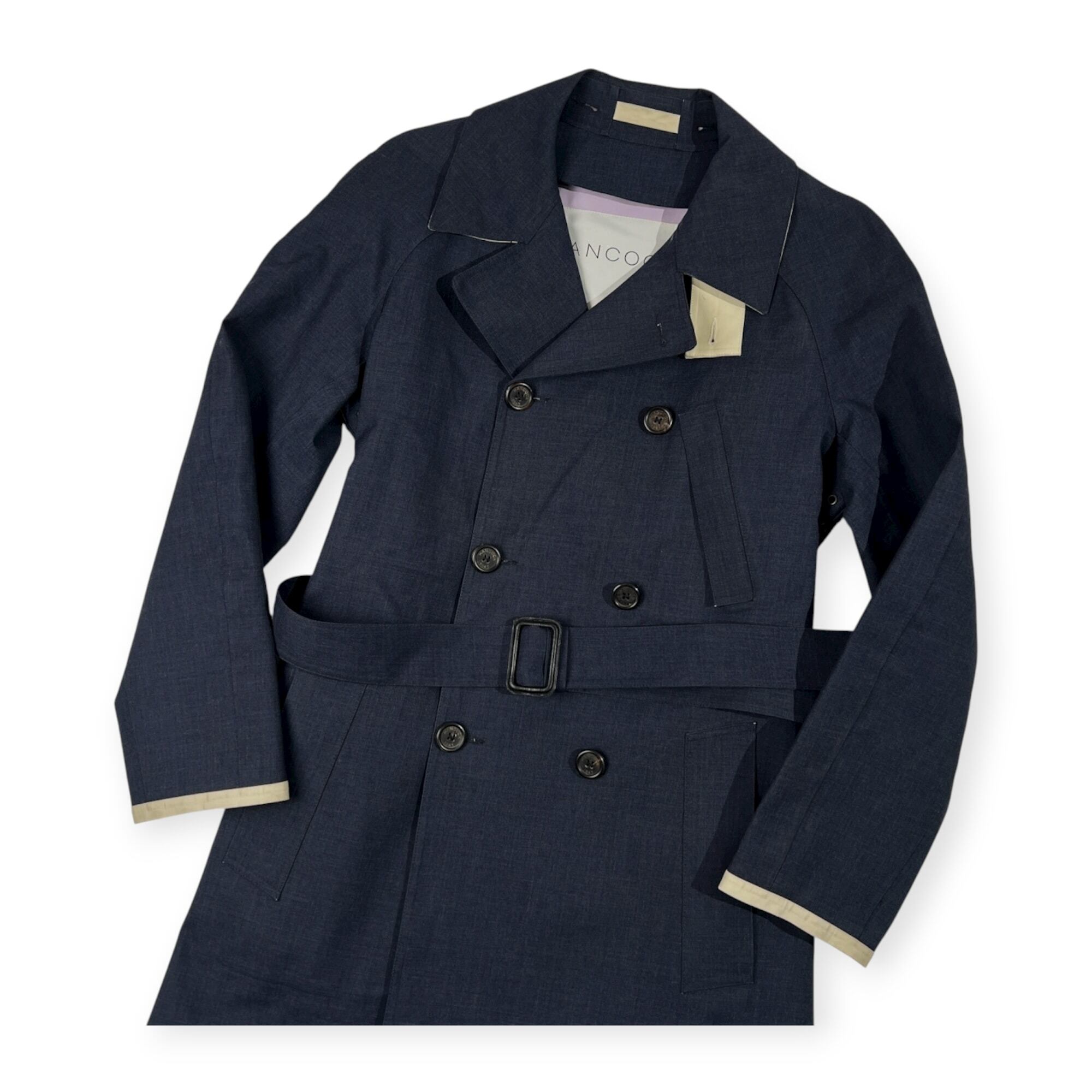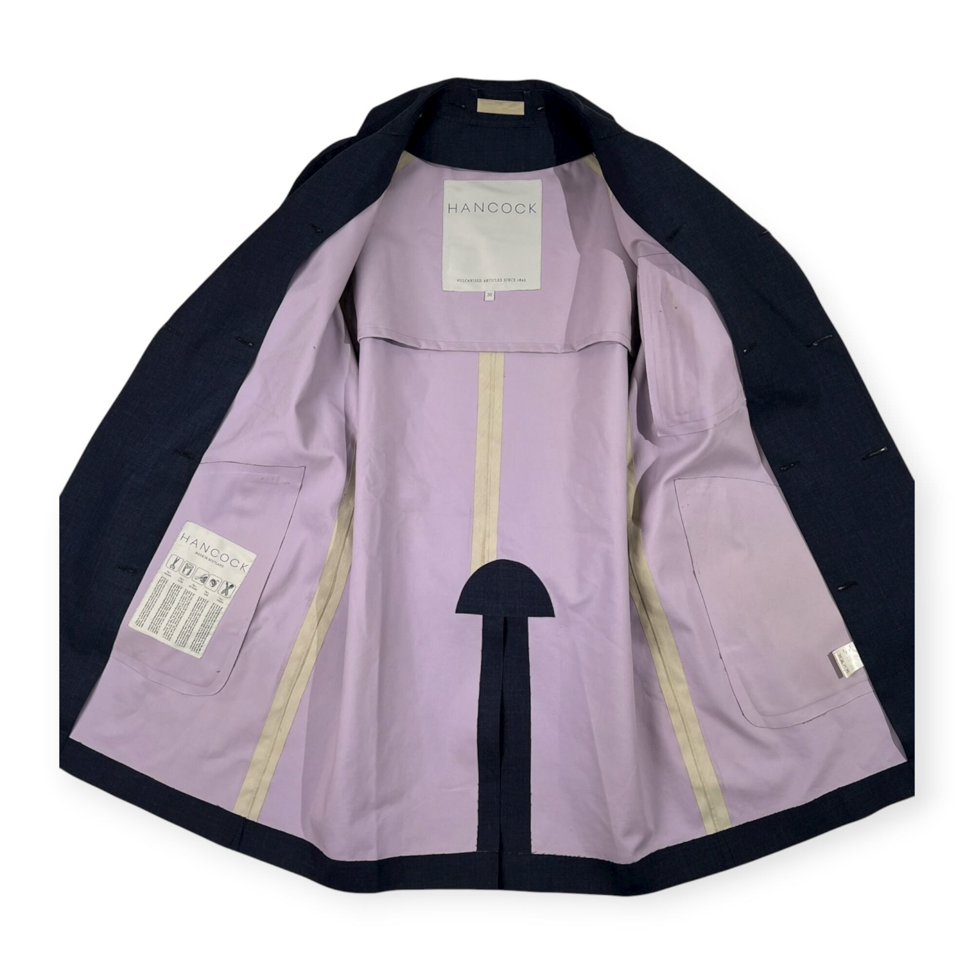 HANCOCK ハンコック カシミア×ウール スコットランド製 ゴム引き トレンチコート サイズ 38 /ネイビー