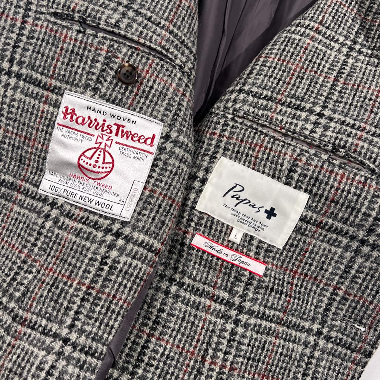 Papas+ パパス × Harris Tweed ハリスツイード チェック 段返3B ウール テーラードジャケット L/メンズ 日本製