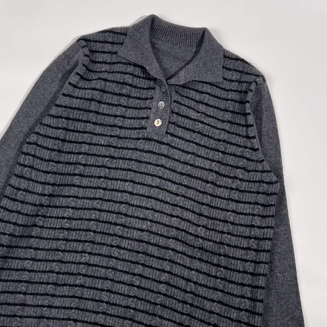 カシミヤ100% Plaisir femme. プレジールファム ボーダー ポロニット セーター /グレー レディース