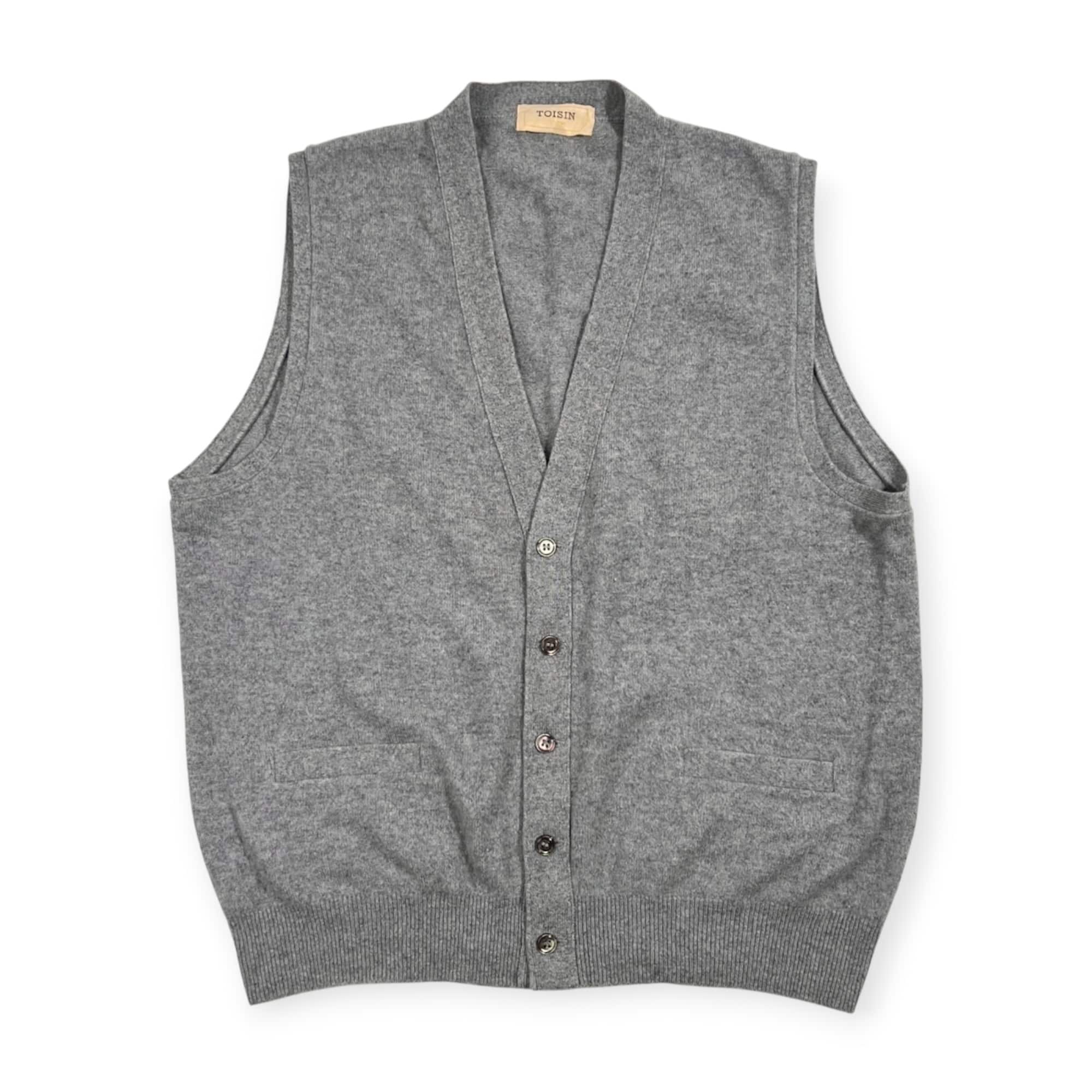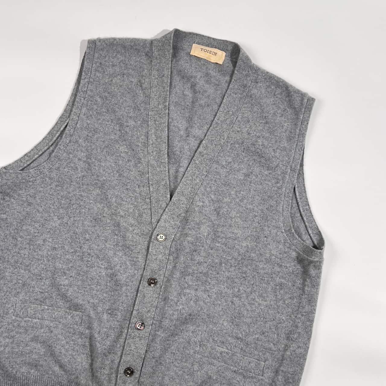 カシミヤ100% TOISIN トイシン 前開き ニット ベスト L/グレー メンズ
