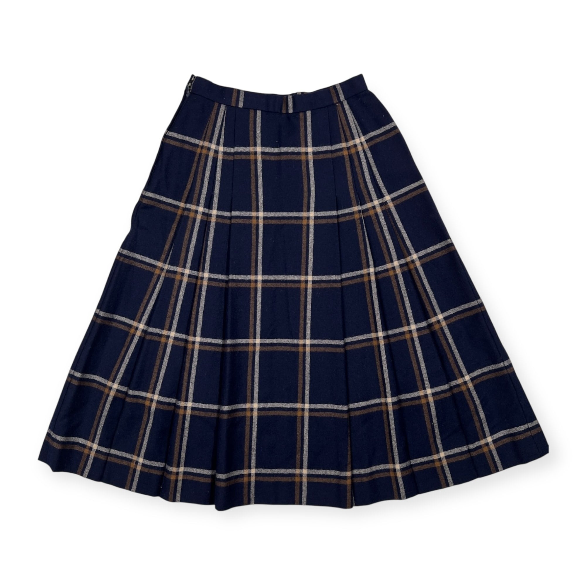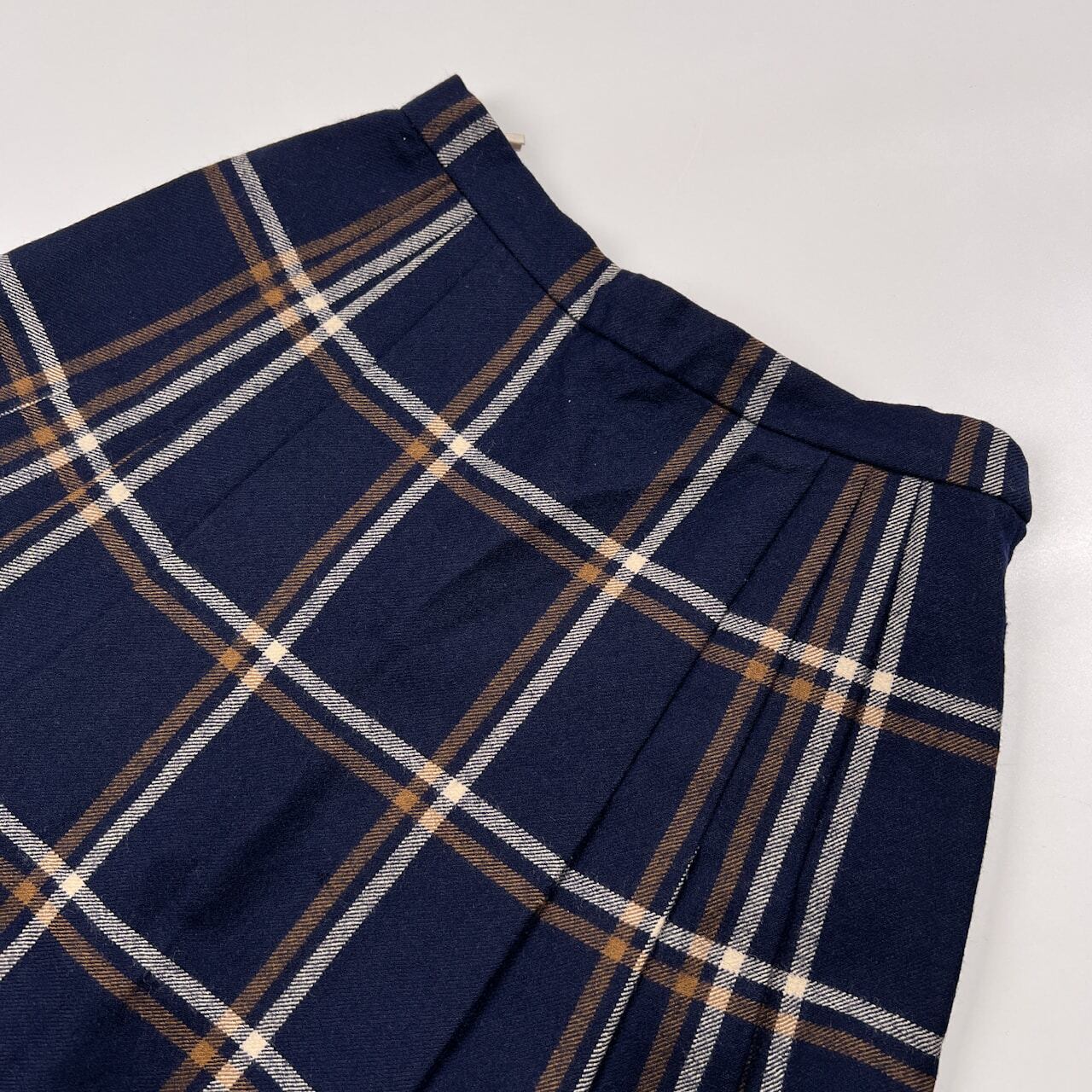 Aquascutum アクアスキュータム チェック柄 ウール プリーツ スカート サイズ 9 /ビンテージ/ネイビー/レディース