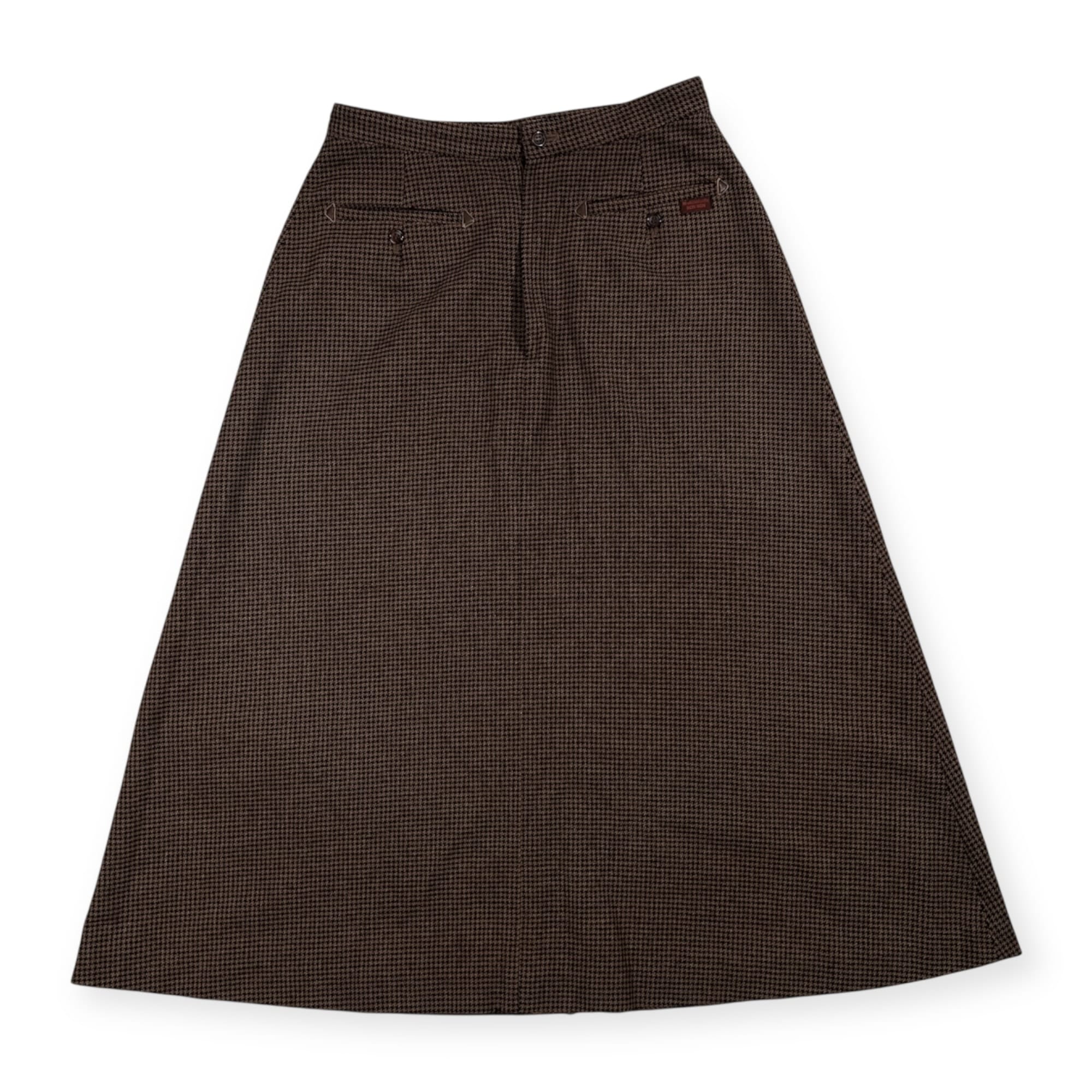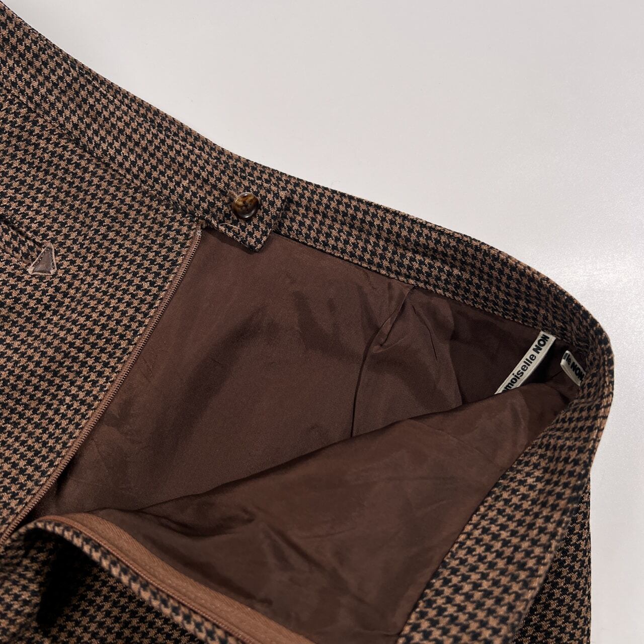 Mademoiselle NON NON マドモアゼルノンノン 千鳥格子 ウール フレア 台形 ロング スカート サイズ LL /ブラウン系/レディース/パパス