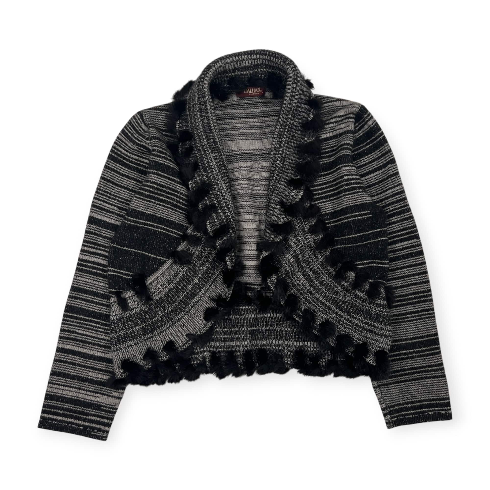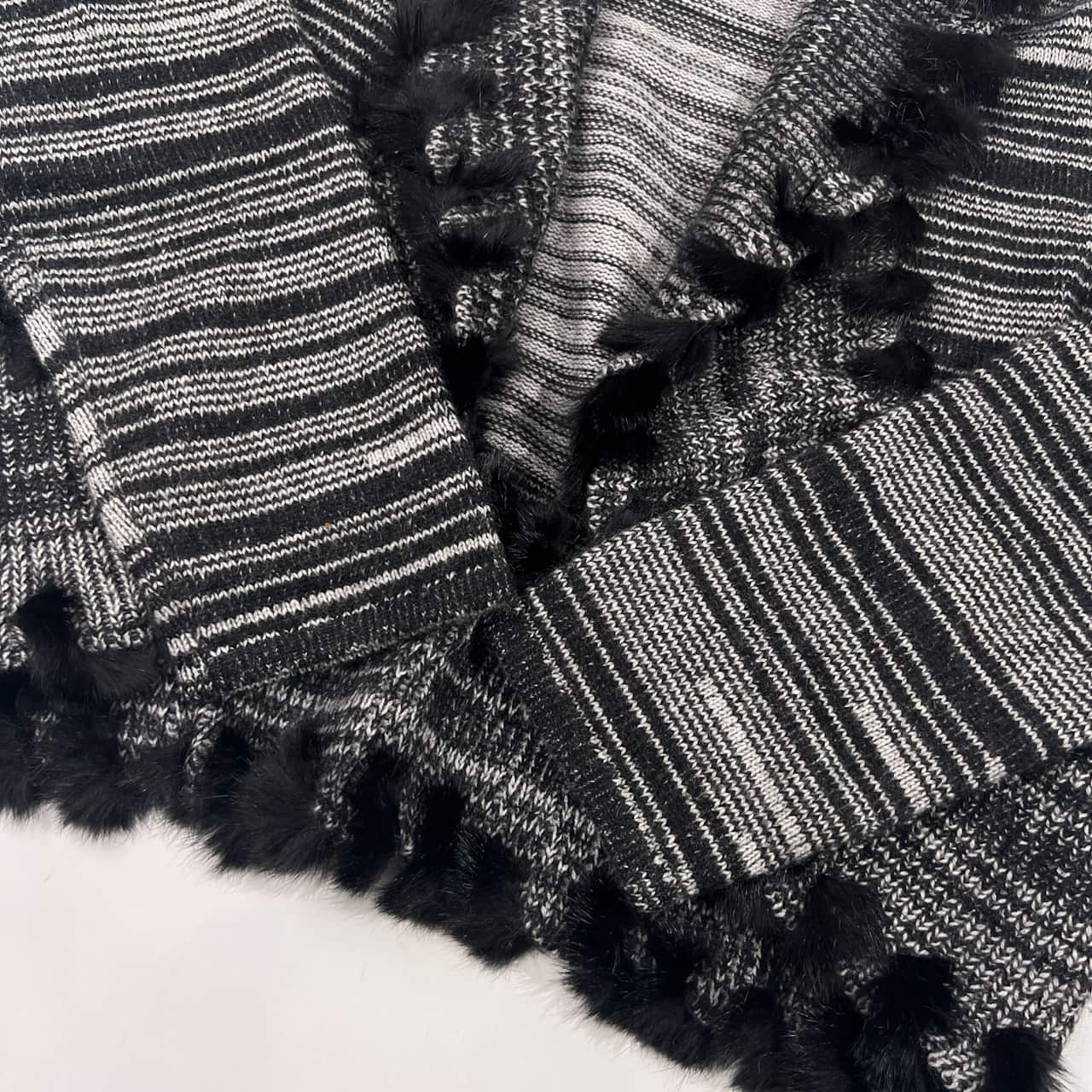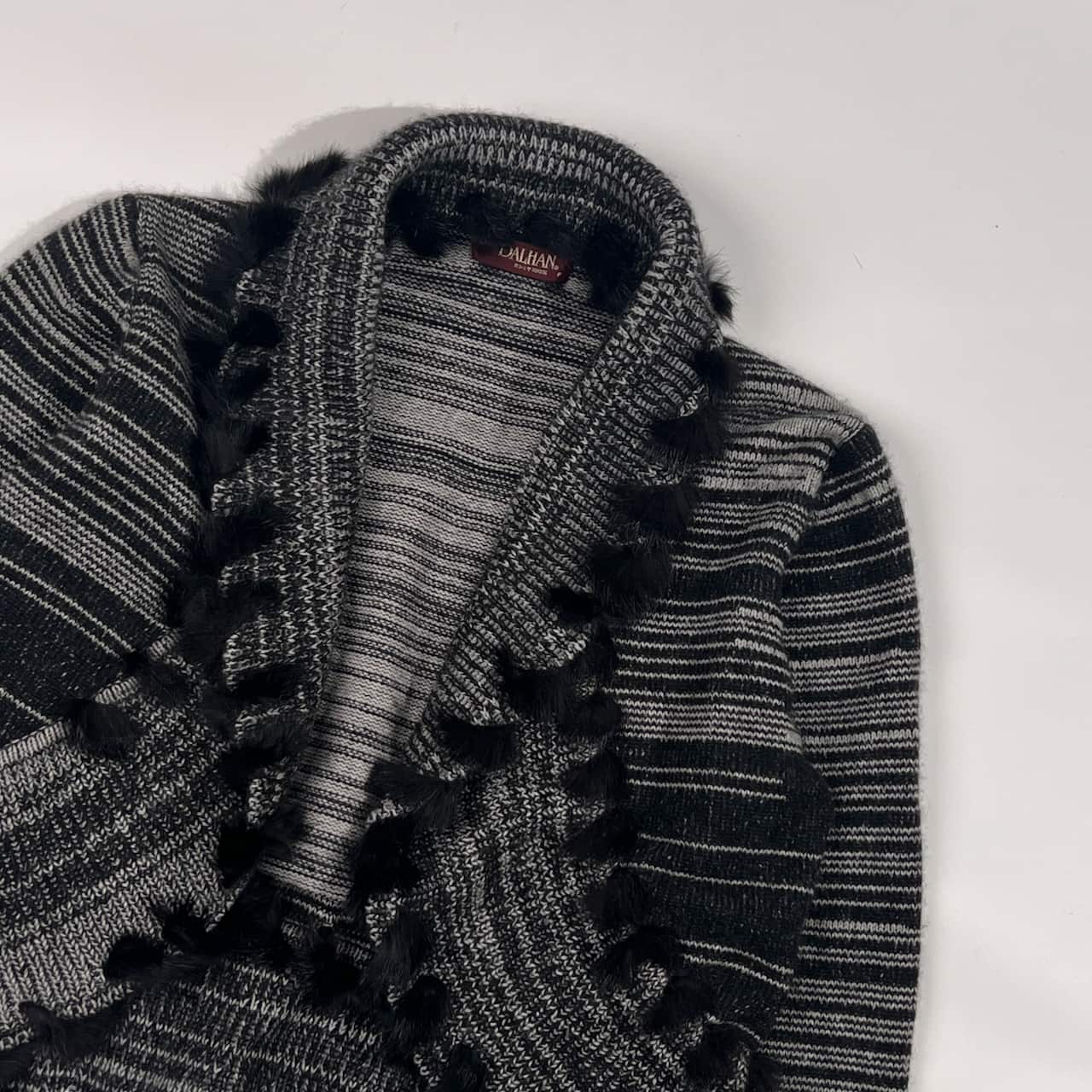 カシミヤ100% DANY DALHAN ダニーダルハン ボーダー デザイン ニット カーディガン 羽織 F/グレー系 レディース
