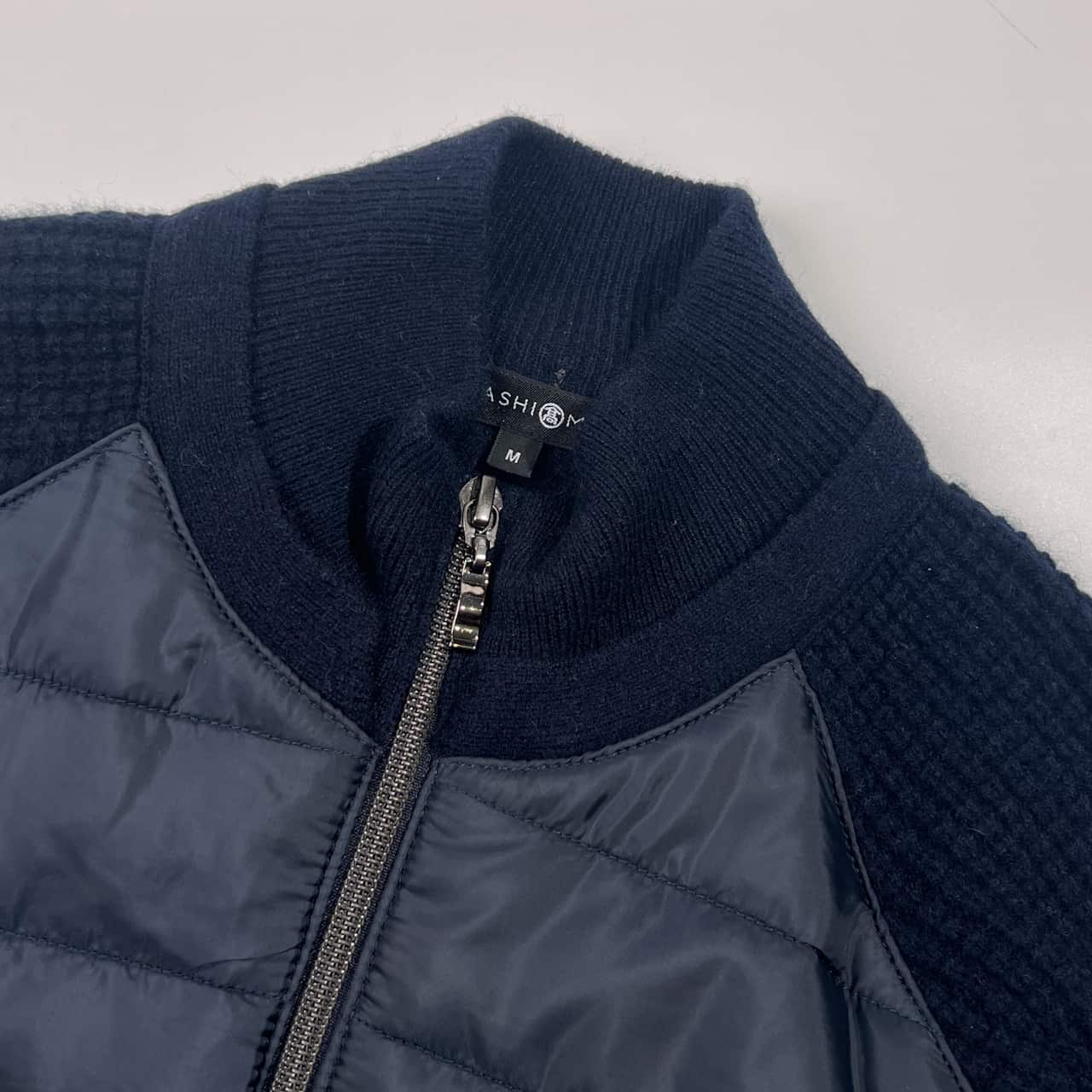 カシミヤ100% TAKASHIMAYA タカシマヤ 中綿 切替 ニット ジャケット M/ネイビー レディース