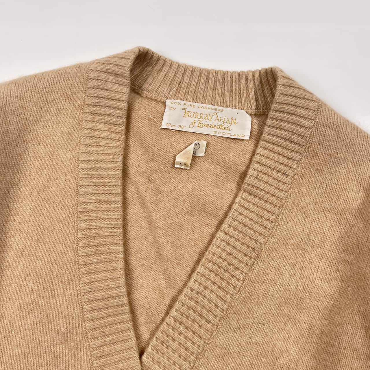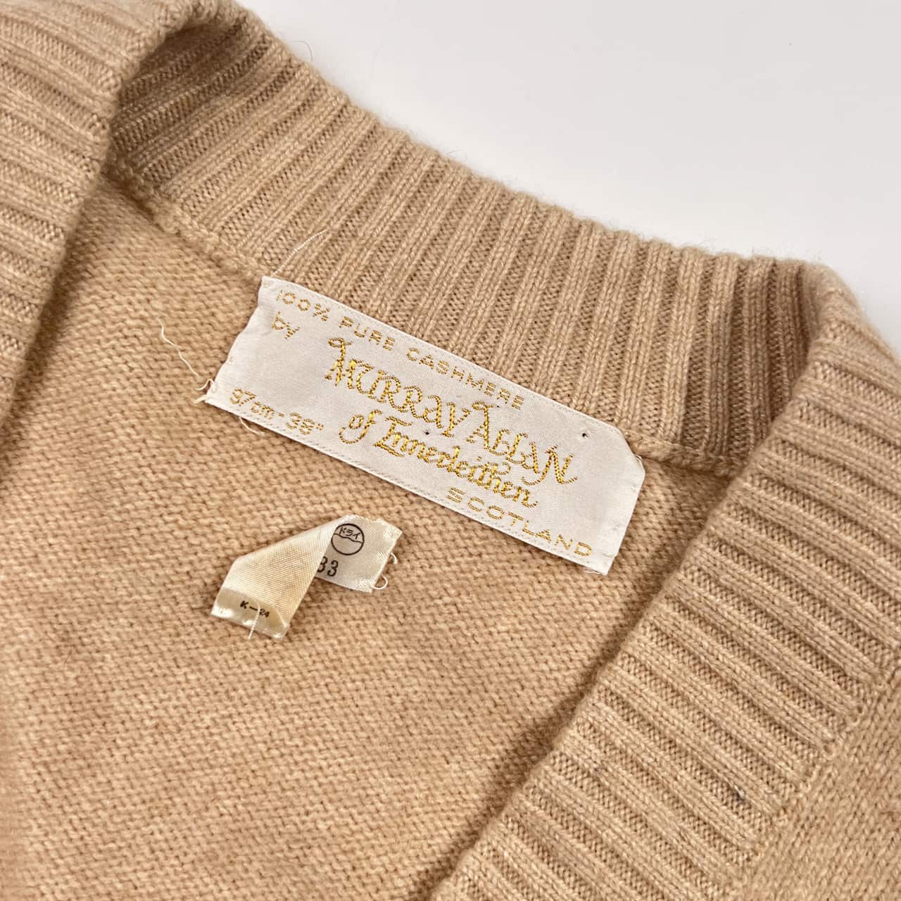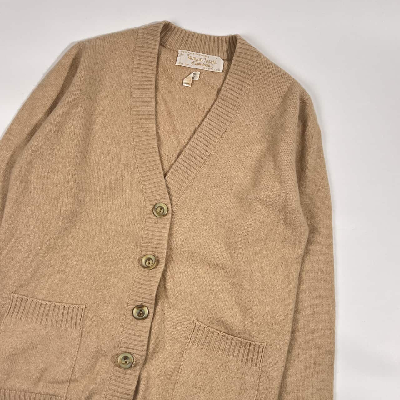 カシミヤ100% スコットランド製 MURRAY ABLAN ニット カーディガン 37cm-38" /ベージュ レディース