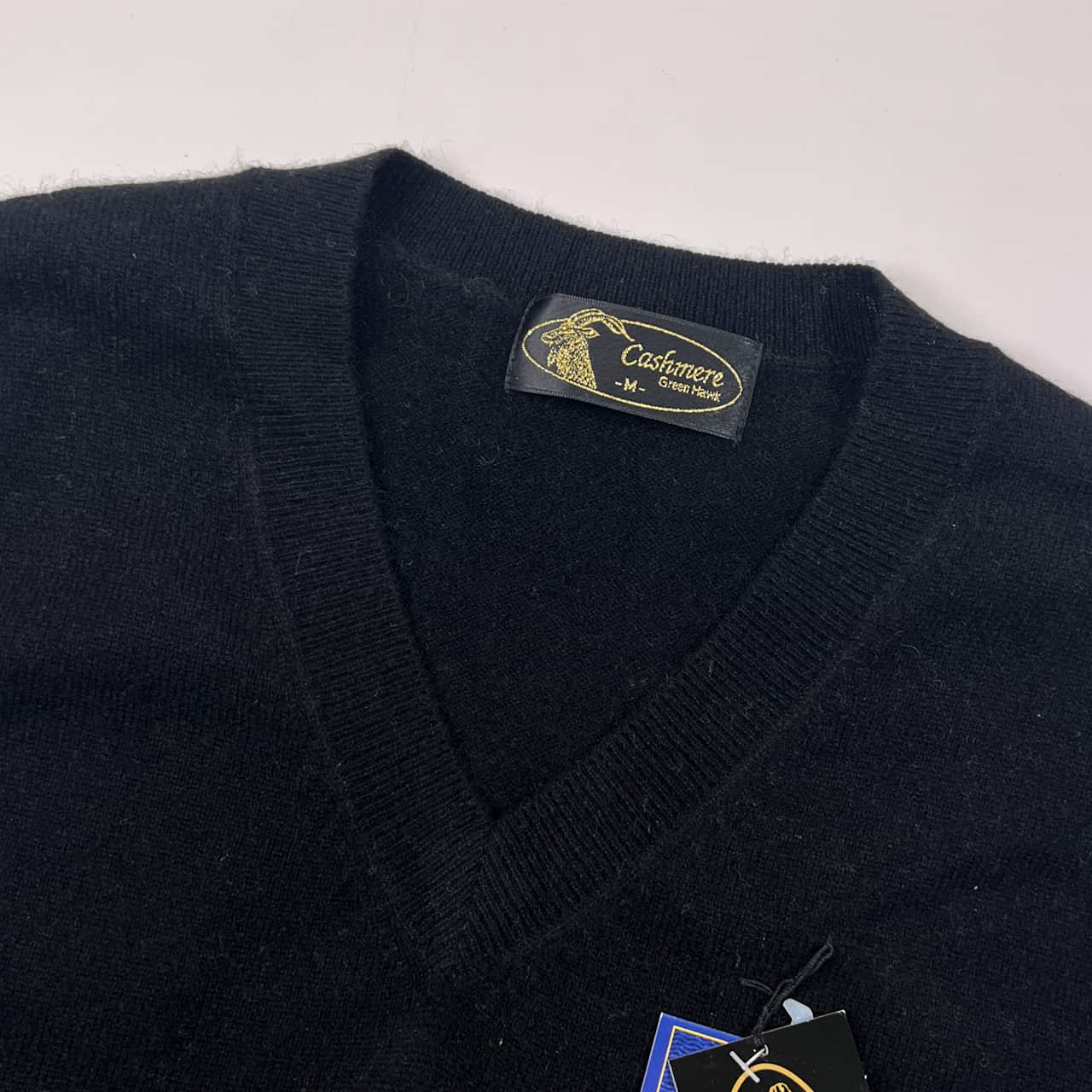 カシミヤ100% 新品 タグ付き Cashmere Green Hawk カシミヤグリーンホーク Vネック ニット ベスト M/ブラック メンズ