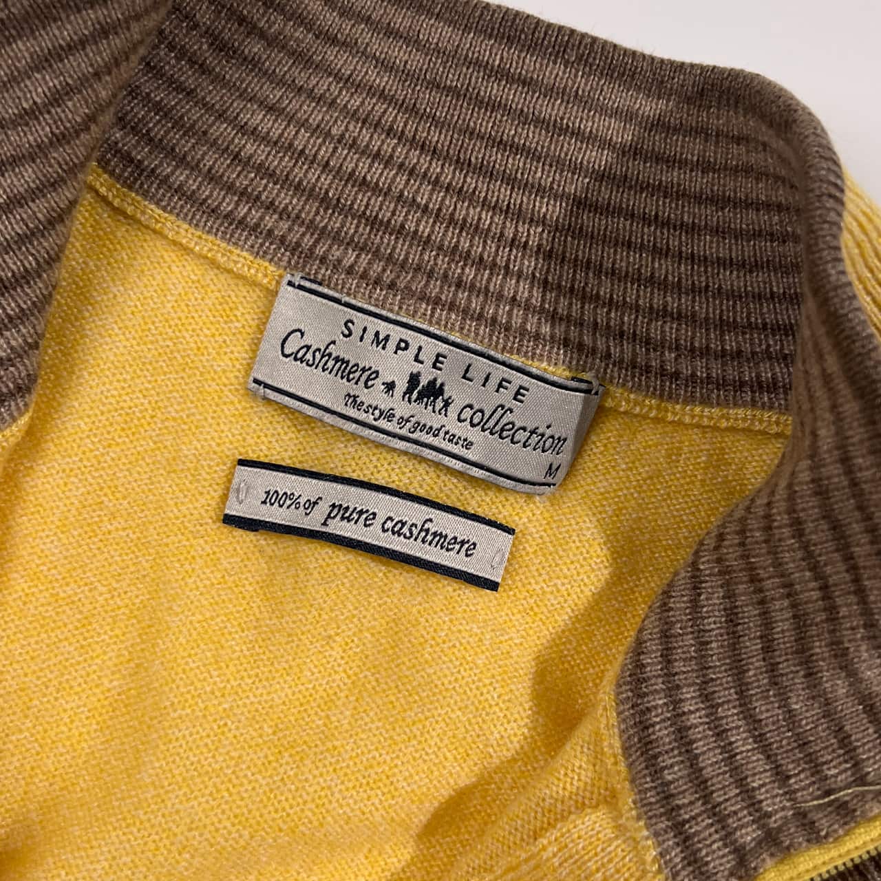 カシミヤ100% SIMPLE LIFE シンプルライフ ハーフボタン ハーフジップ ニット セーター M/イエロー メンズ