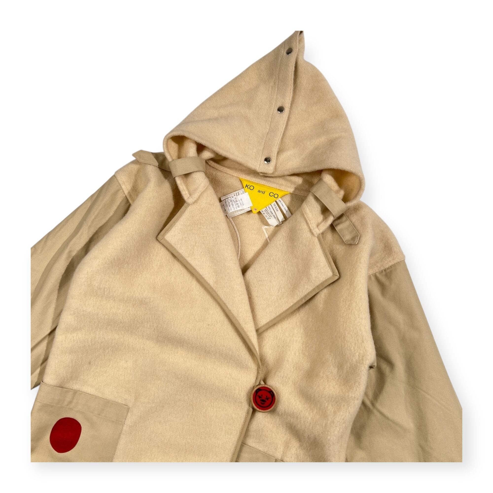 希少 フランス製 90s KO and CO コーアンドコー 切替デザイン ウール オーバー コート ジャケット /ウールン商会/アイボリー系/ビンテージ