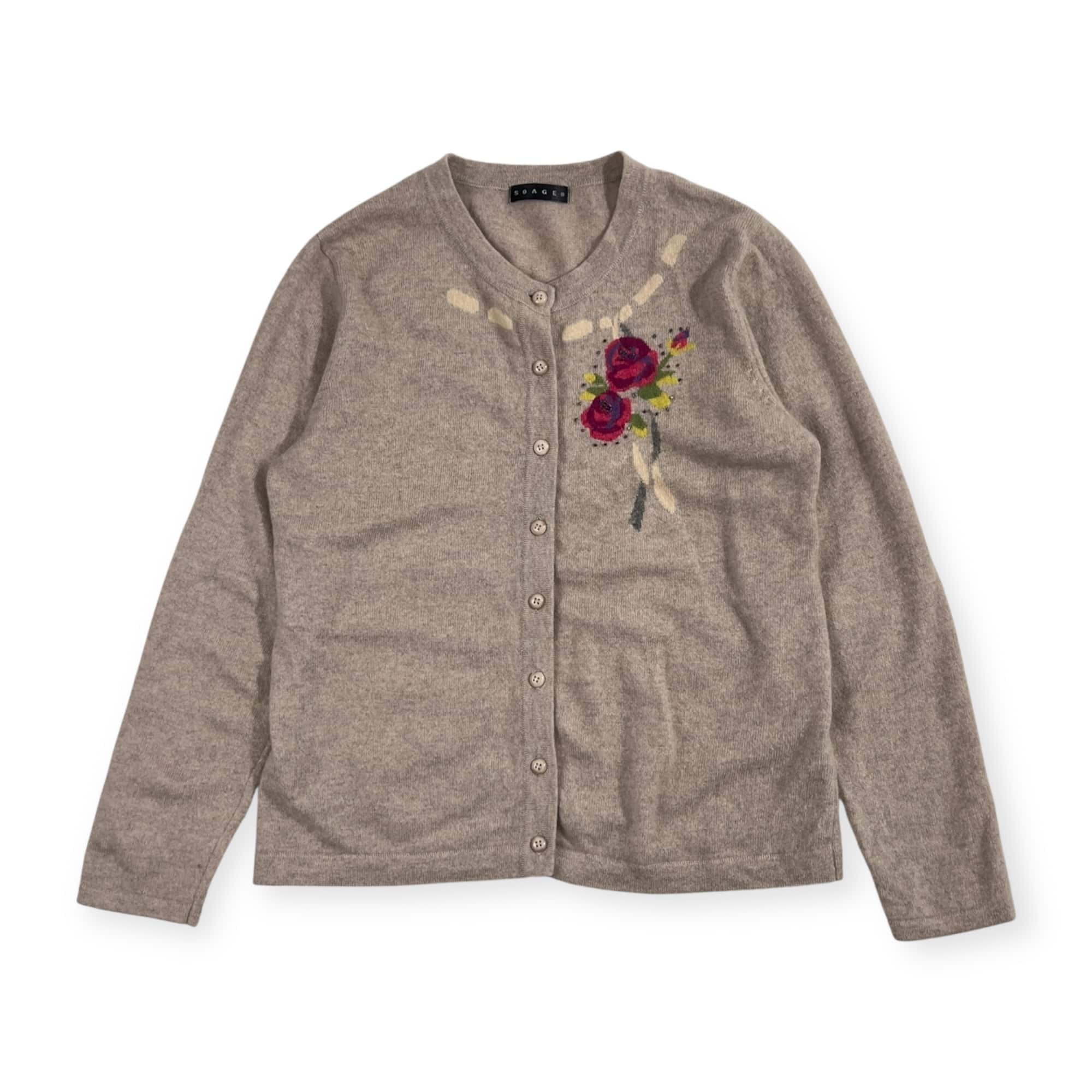 カシミヤ100% SOAGE ソアージュ ビーズ バラ柄 ニット カーディガン M-L/グレー レディース